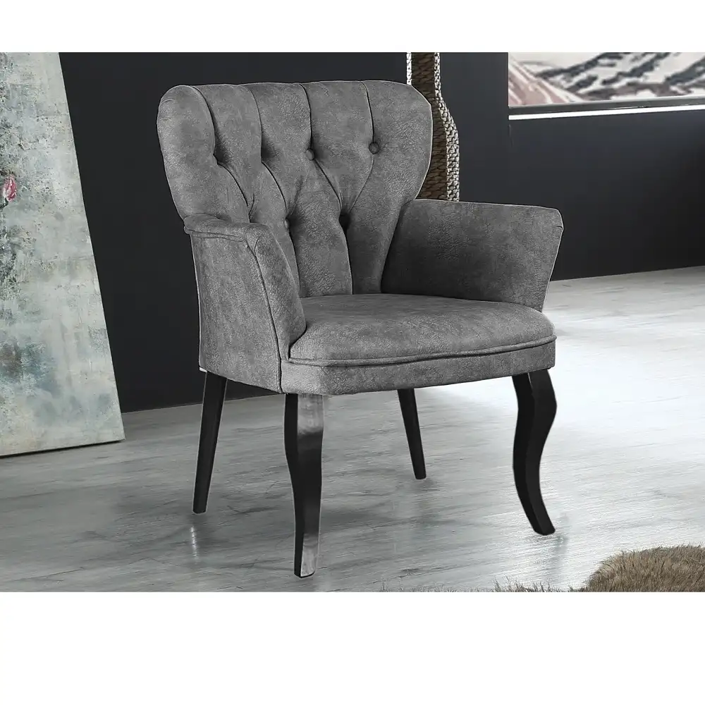 Cu un design clasic și influențe din stilul Chesterfield, acest fotoliu este alegerea ideală pentru a-ți crea un colț cozy și plin de farmec în camera de zi sau în sala de lounge. Piciorul elegant în stil clasic și detaliile rafinate conferă un aspect aparte fotoliului, transformând orice spațiu într-unul cu adevărat elegant și plin de stil.