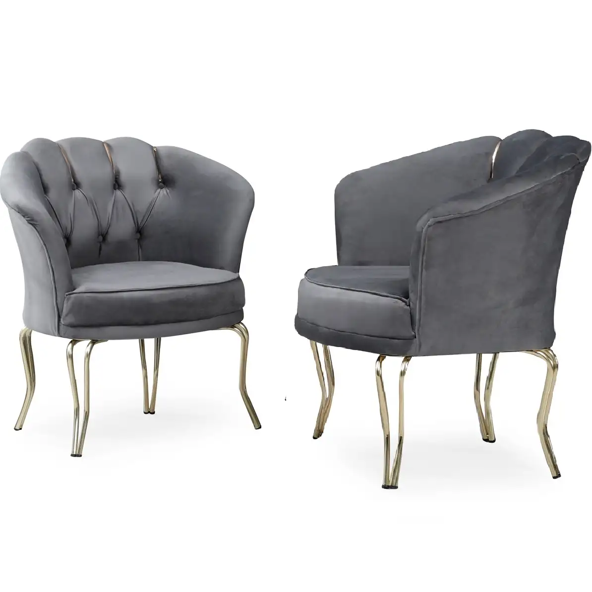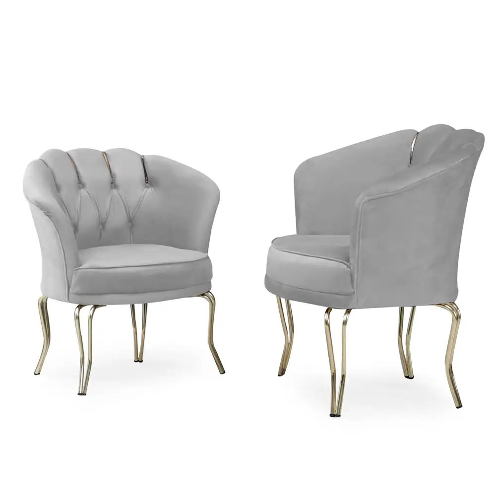 Cu un design inspirat din estetica art-deco, fotoliul Viena în nuanța gri cu detalii aurii, aduce un echilibru perfect între rafinament și subtilitate. Silueta sa sculpturală, ce evocă delicatețea unei scoici, transformă această piesă într-un element decorativ sofisticat și de impact.