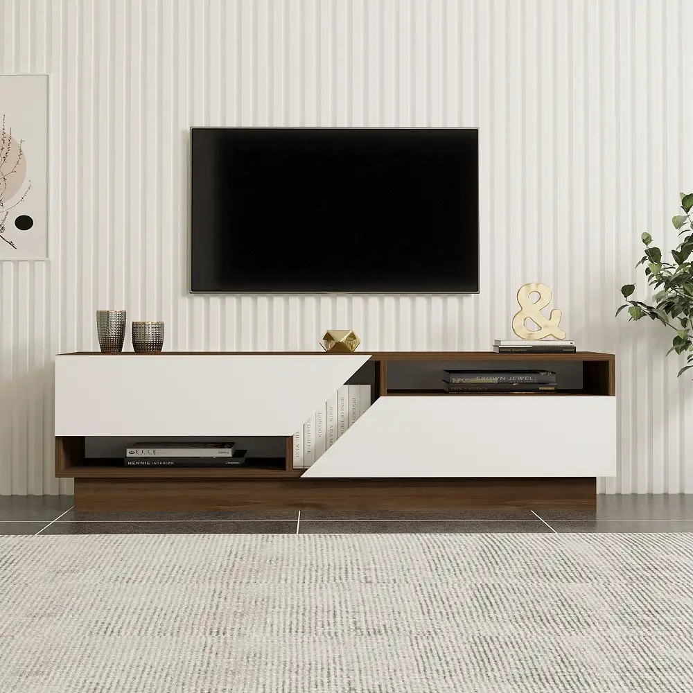 Comoda televizor Coza pentru living culoare alb si nuc, 160 cm