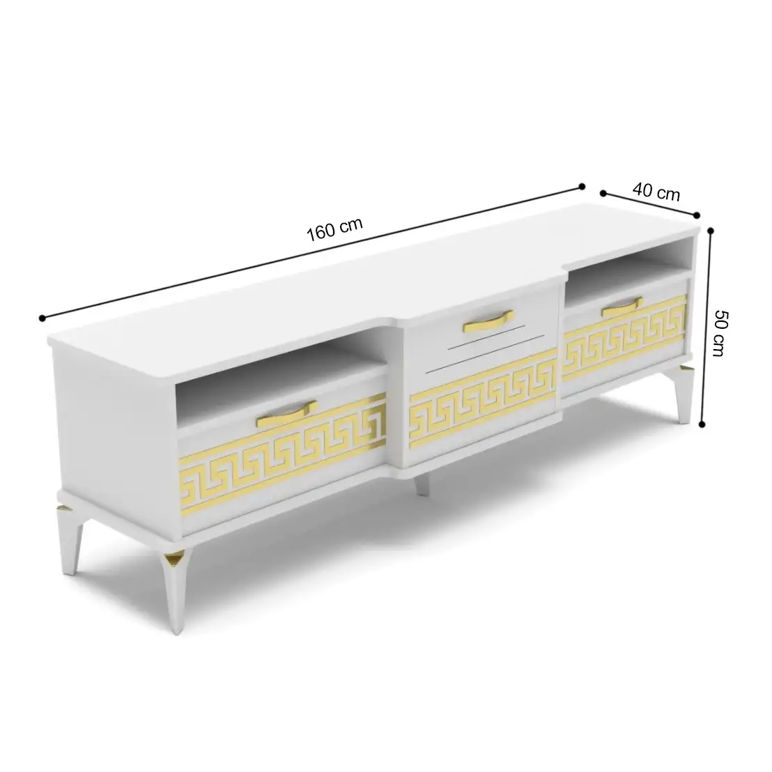 Comodă TV Luisa, alb și auriu – Eleganță și rafinament pentru livingul tău