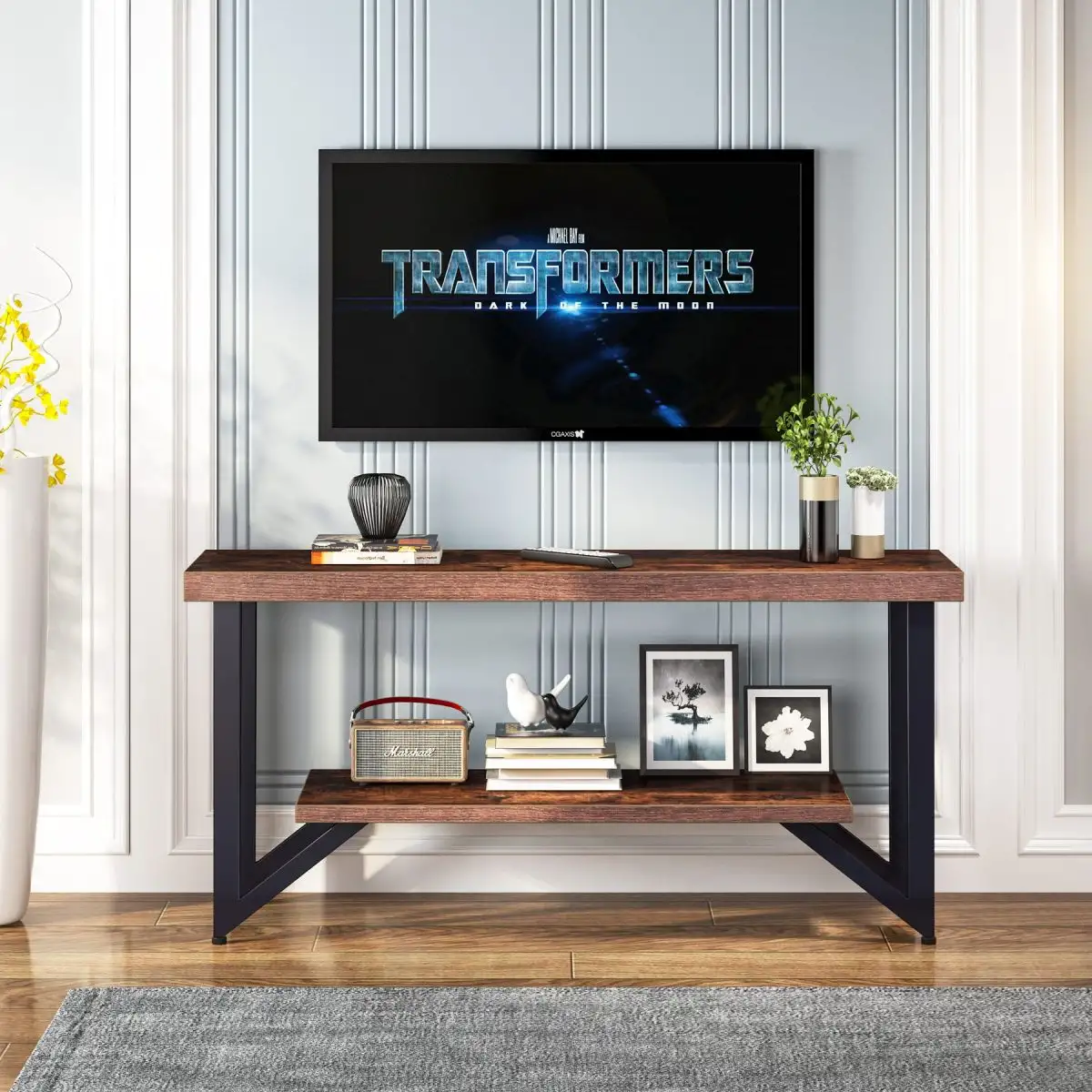 Comoda tv cu picioare metal Homs 140 cm, nuc-negru,30403