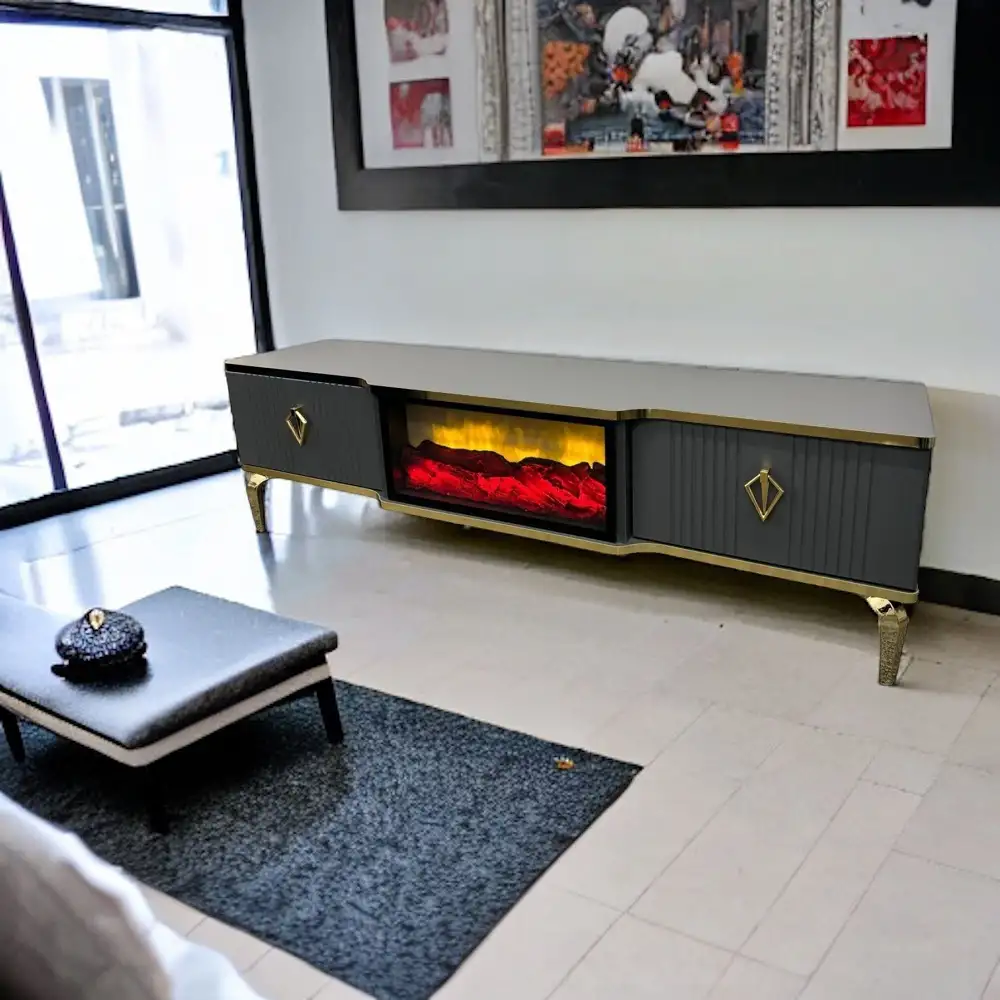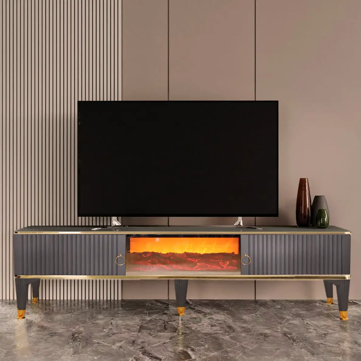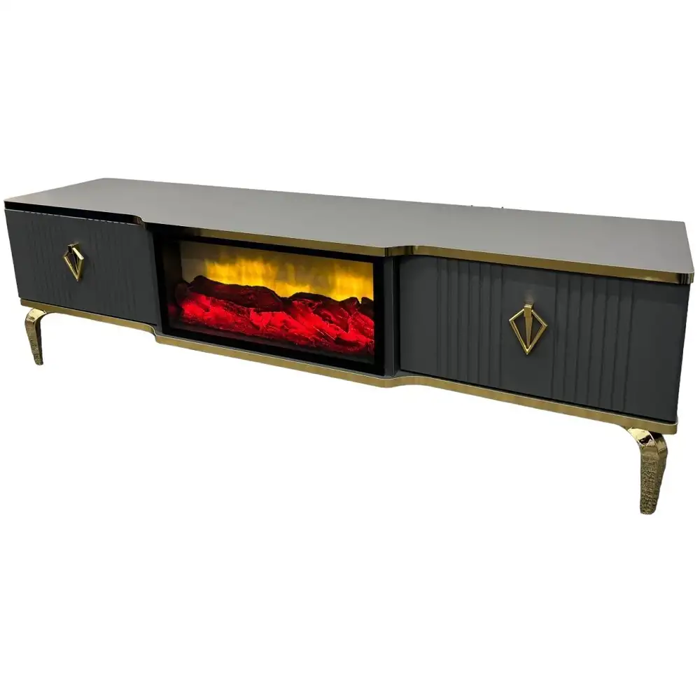 Comoda tv cu semineu Calvin culoare gri si auriu 160 cm