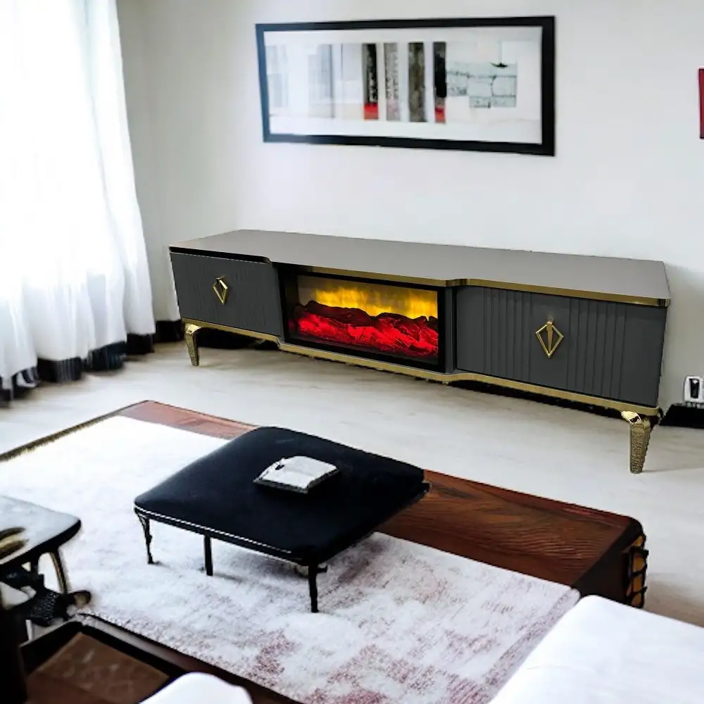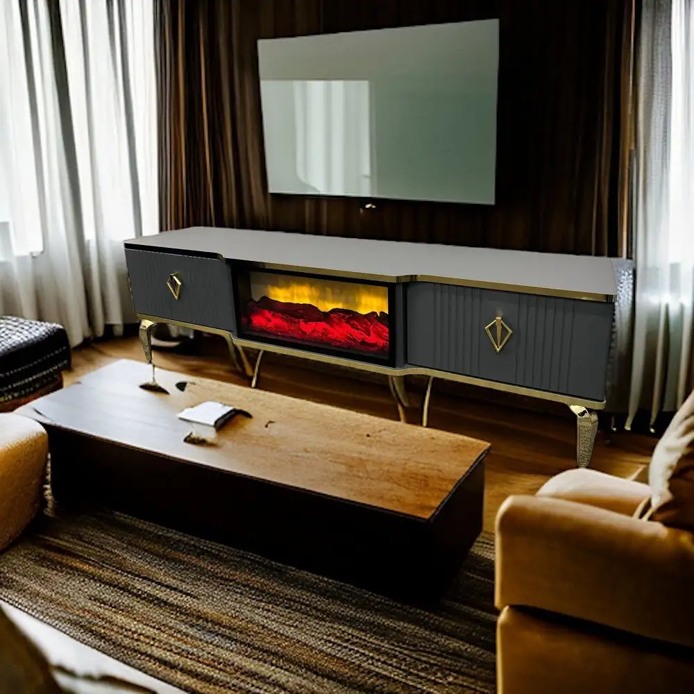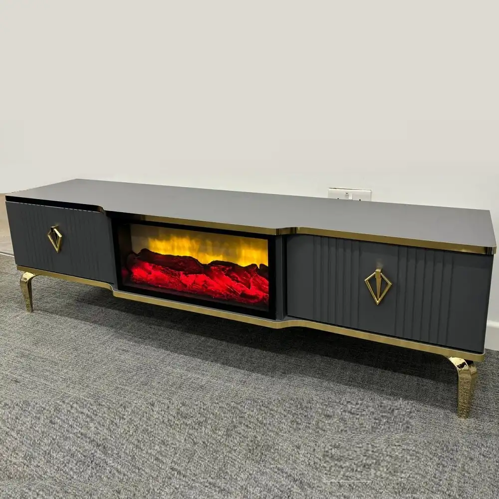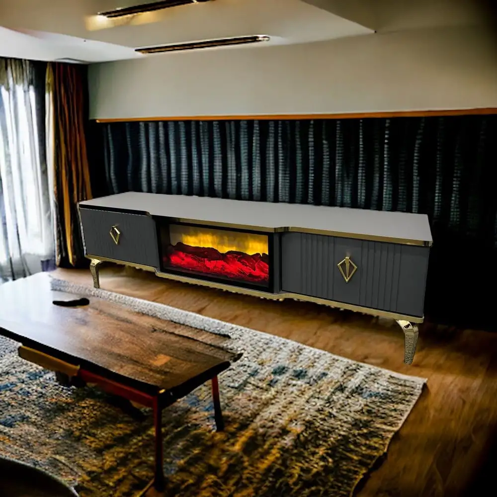 Comoda tv cu semineu Calvin culoare gri si auriu 160 cm