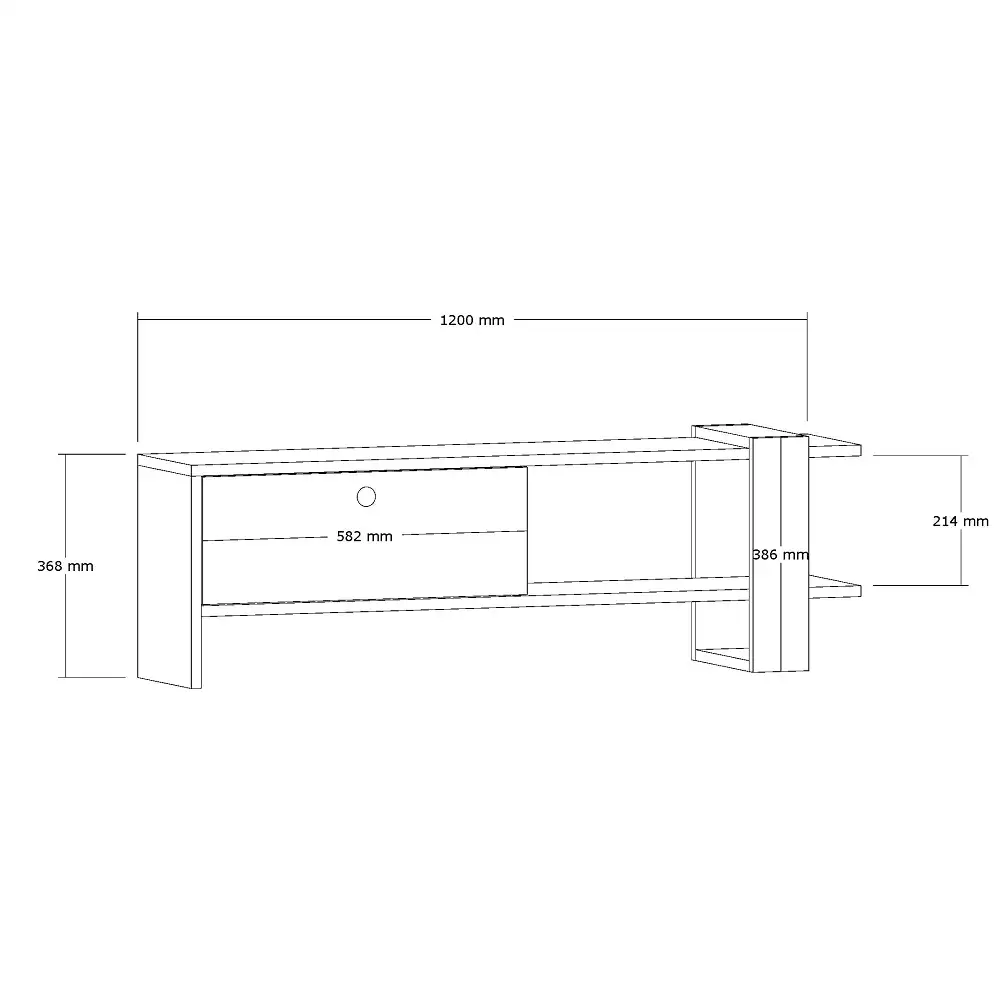 100% MELAMINE COATED PARTICLE BOARDThickness: 18 mmWidth: 120 cm  Height: 36,8 cm  Depth: 25 cmNumerous ShelvesAdditional Storage