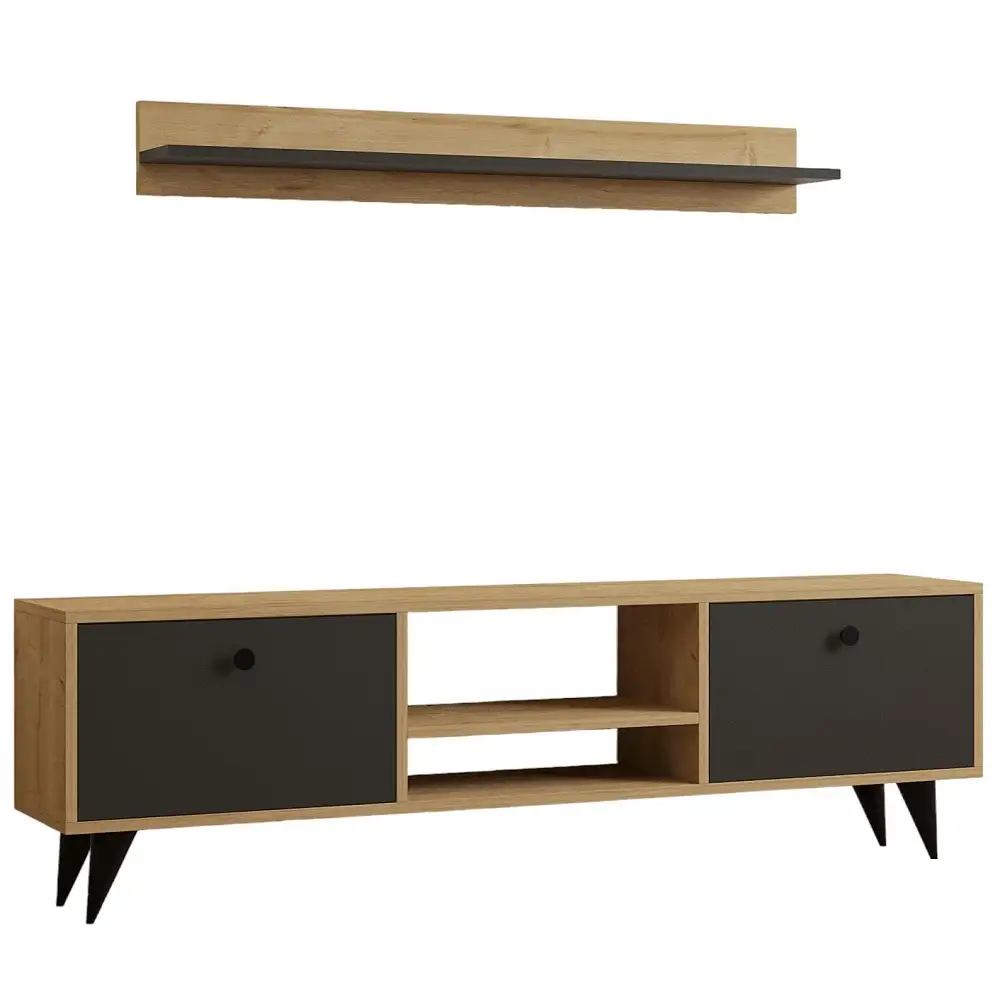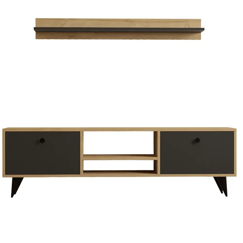 100% MELAMINE COATED PARTICLE BOARDThickness: 18 mmTV Stand Size: Width: 160 cm Height: 48 cm Depth: 29,5 cmShelf Size: Width: 120 cm Height: 15 cm Depth: 14,5 cmNumerous ShelvesCan be Fixed to the WallAdditional Storage