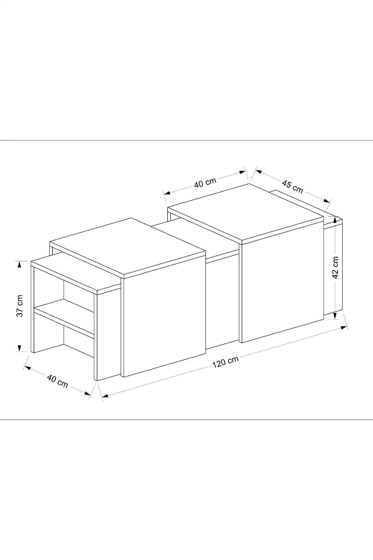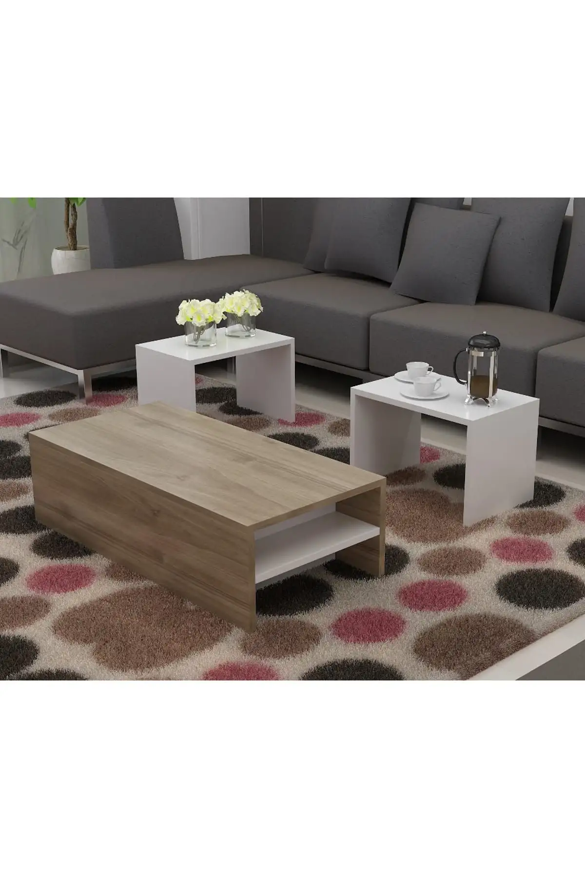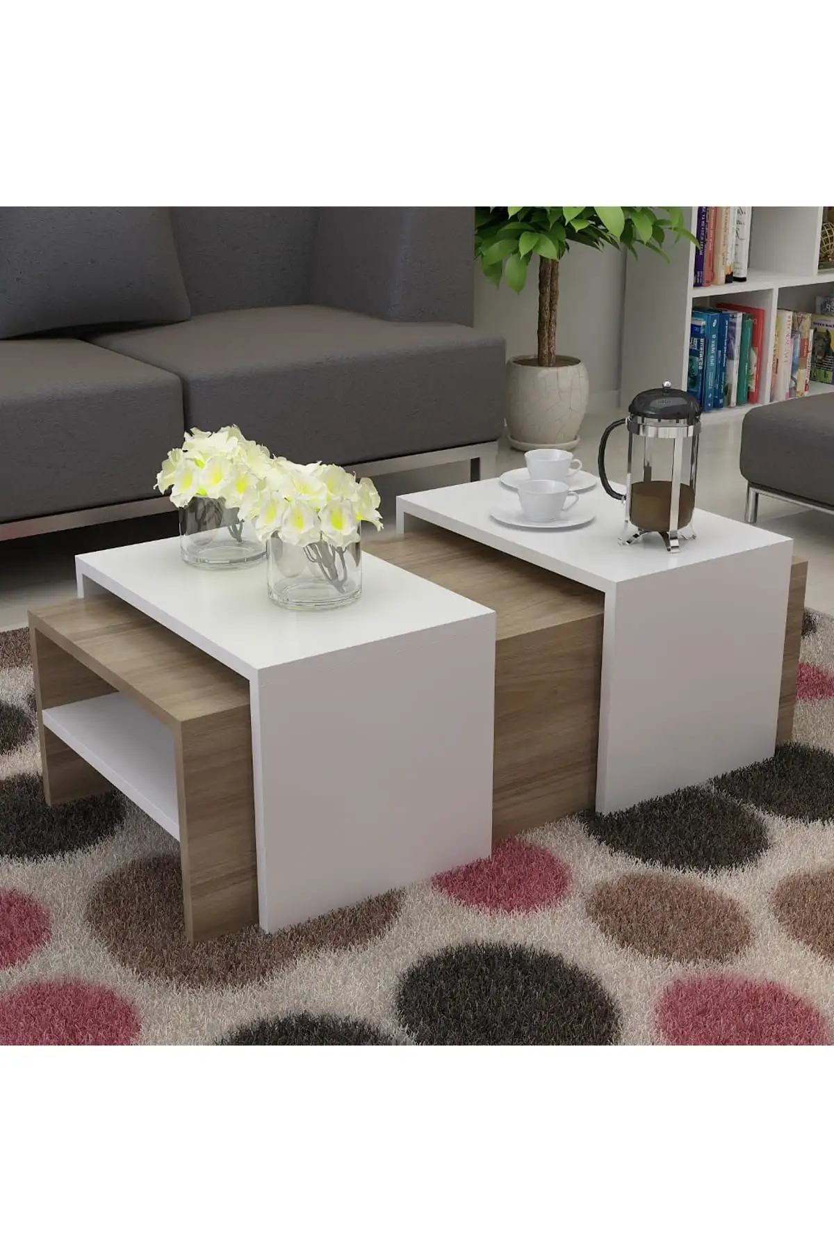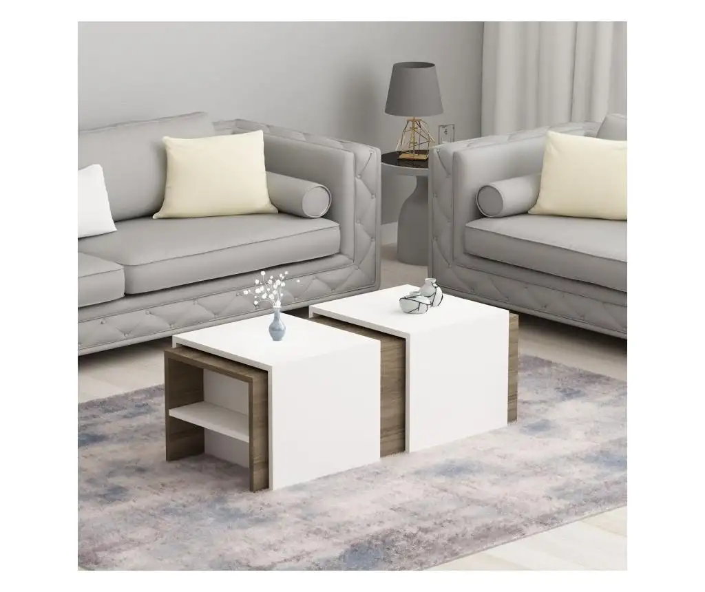 Masa cafea cu masute detasabile Mora Homs alb-nuc