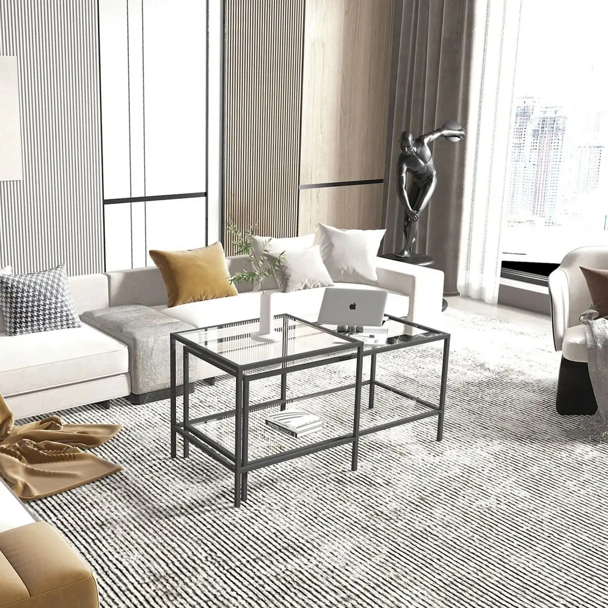 Alege masa de cafea sticla Homs, negru, pentru un interior modern și versatil!