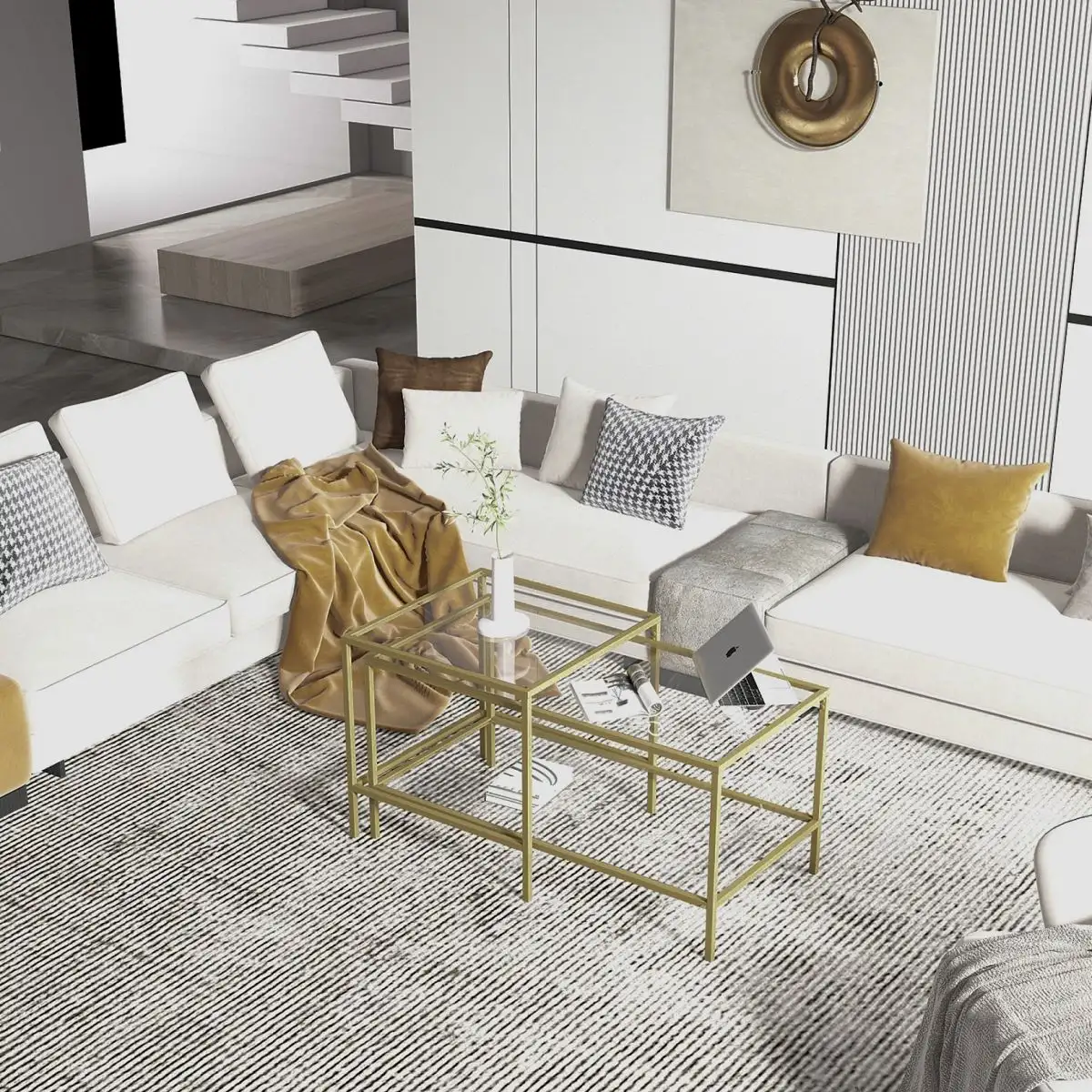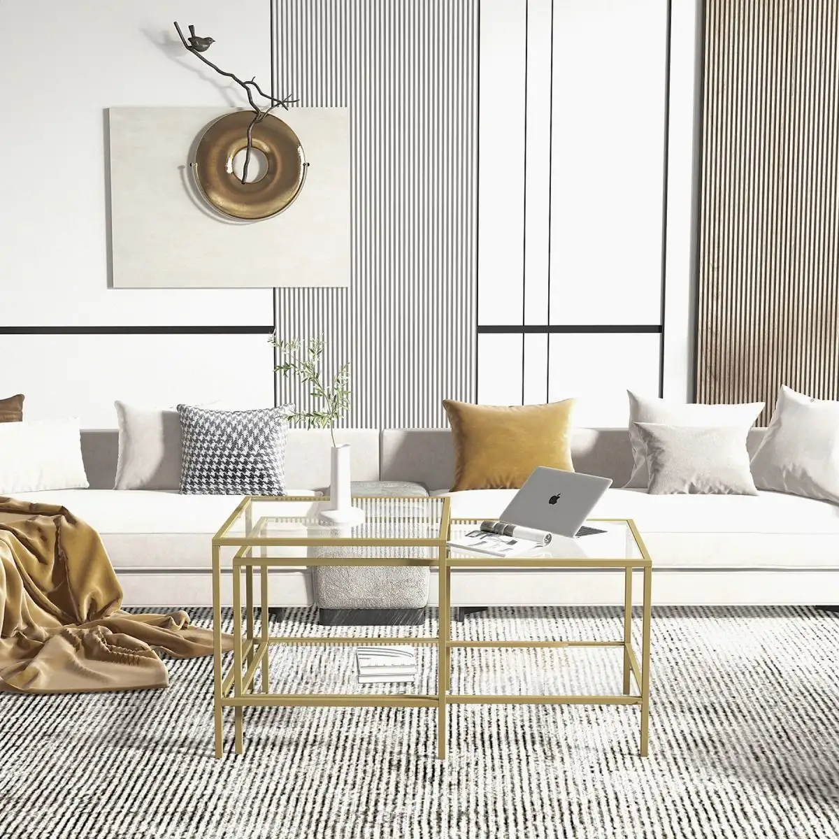 Masa de cafea Deco metal-sticla-auriu,Homs,seria D-710,0029