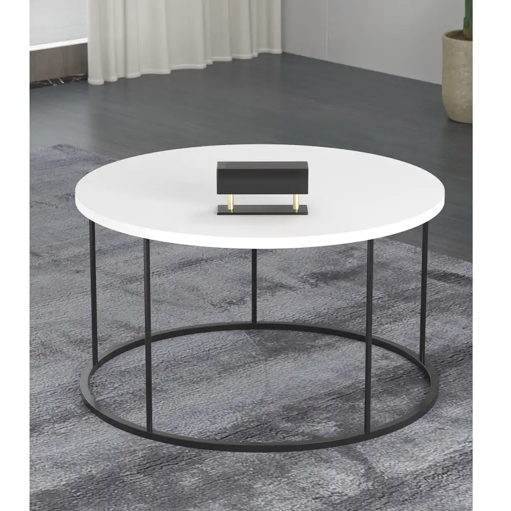 Design contemporan și linii curate – Forma rotundă a blatului creează o senzație de echilibru și fluiditate în decor, iar duo-ul alb-negru adaugă o notă rafinată ce se potrivește perfect în livinguri moderne sau scandinave.
