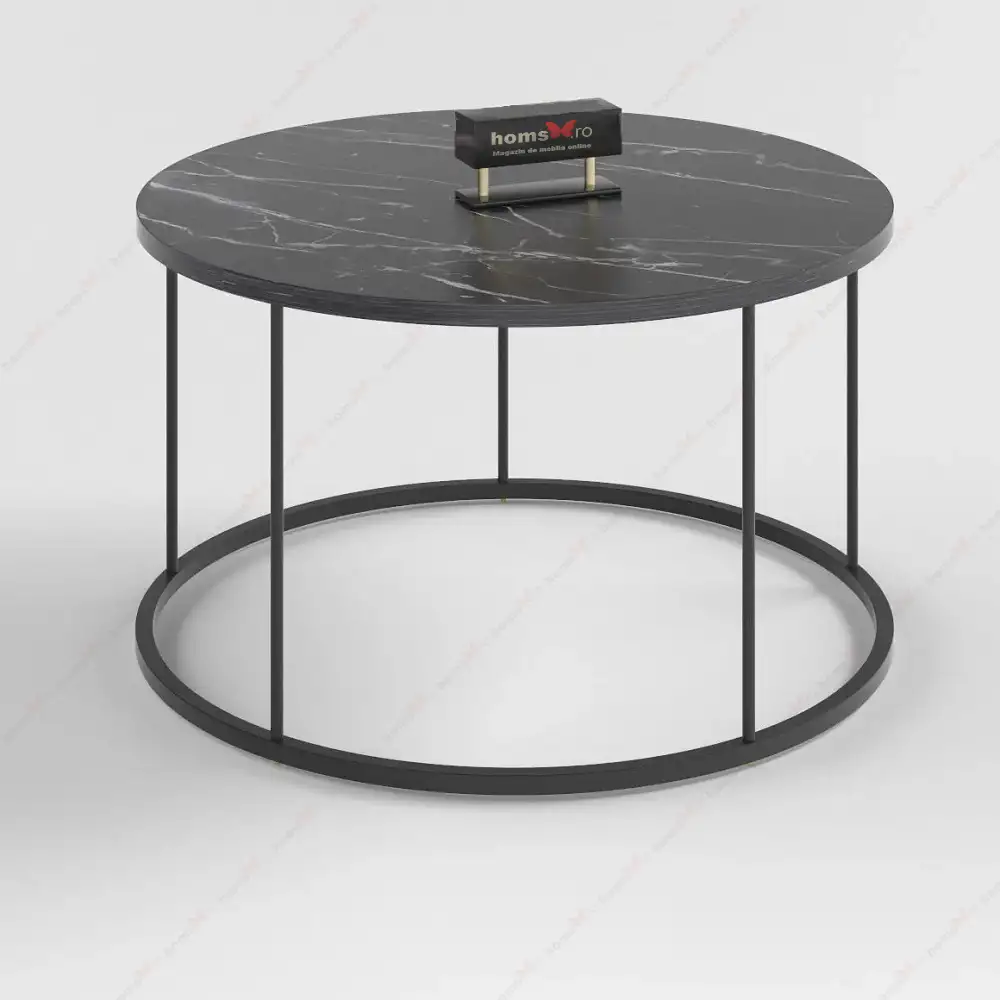 Măsuță de cafea rotundă Vicenta Homs, negru marmorat, 70 cm – Minimalism și rafinament