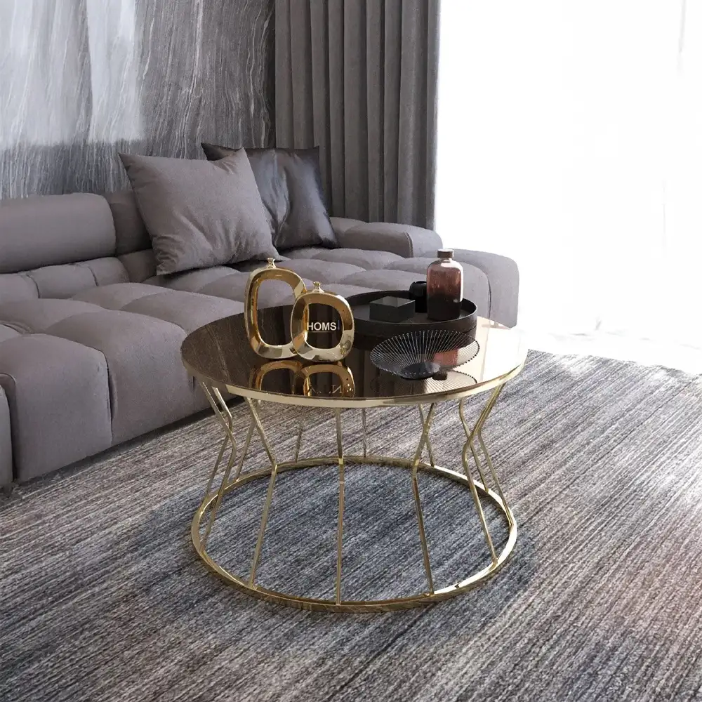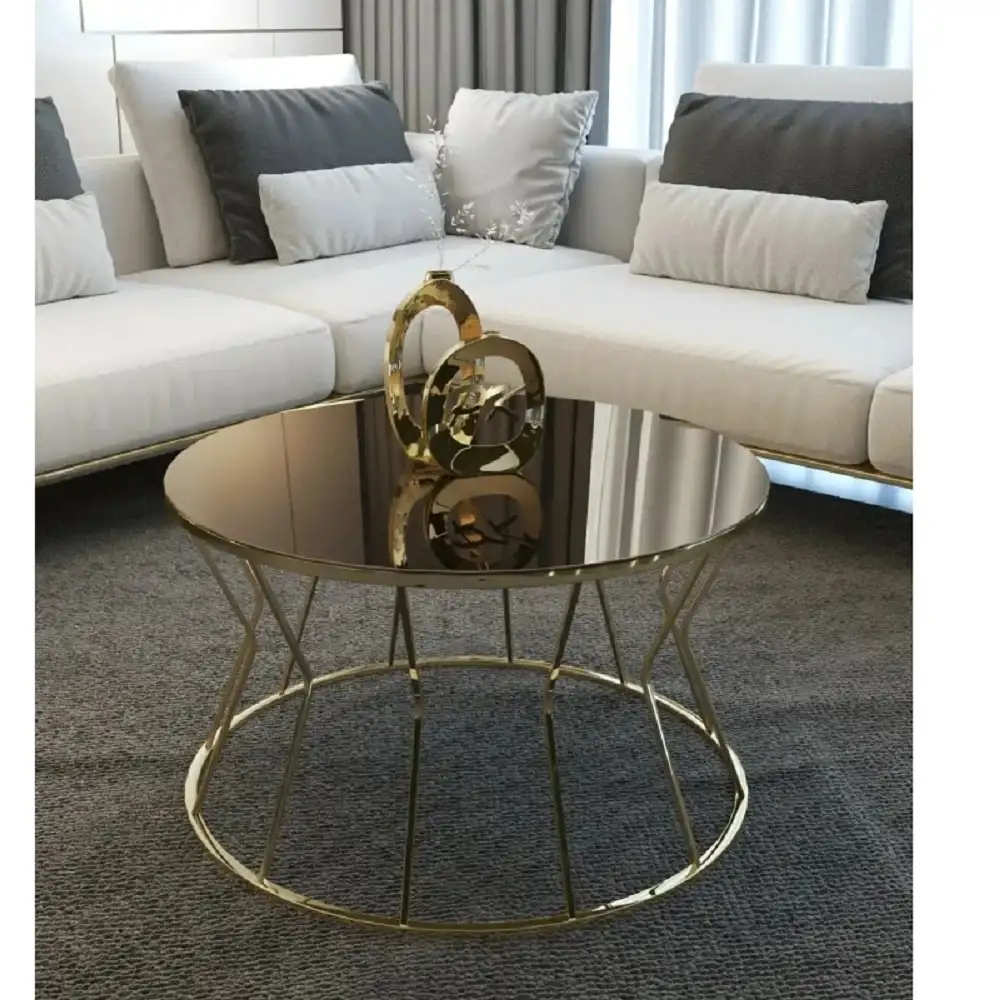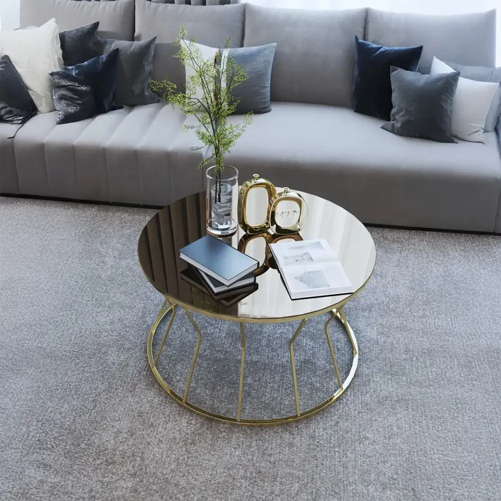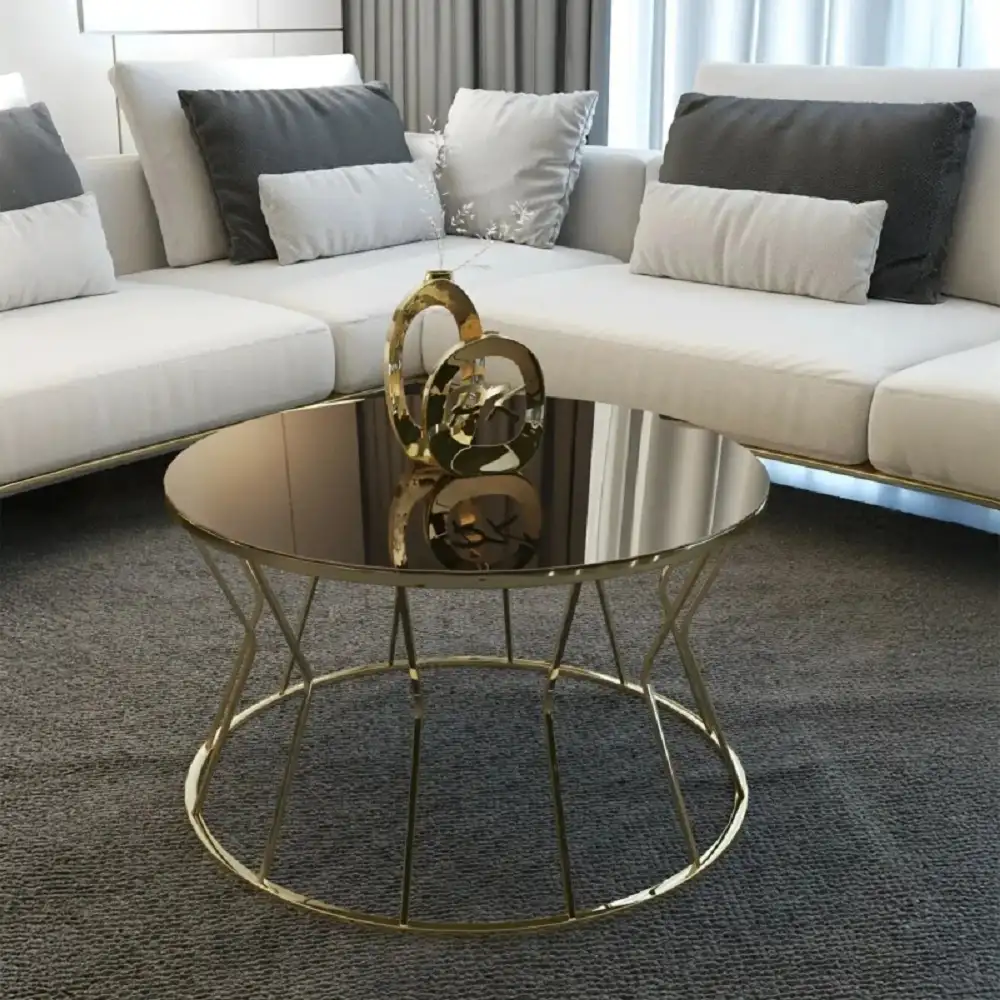 Măsuță de cafea Viena cu blat din sticlă tip oglindă și accente aurii rafinate