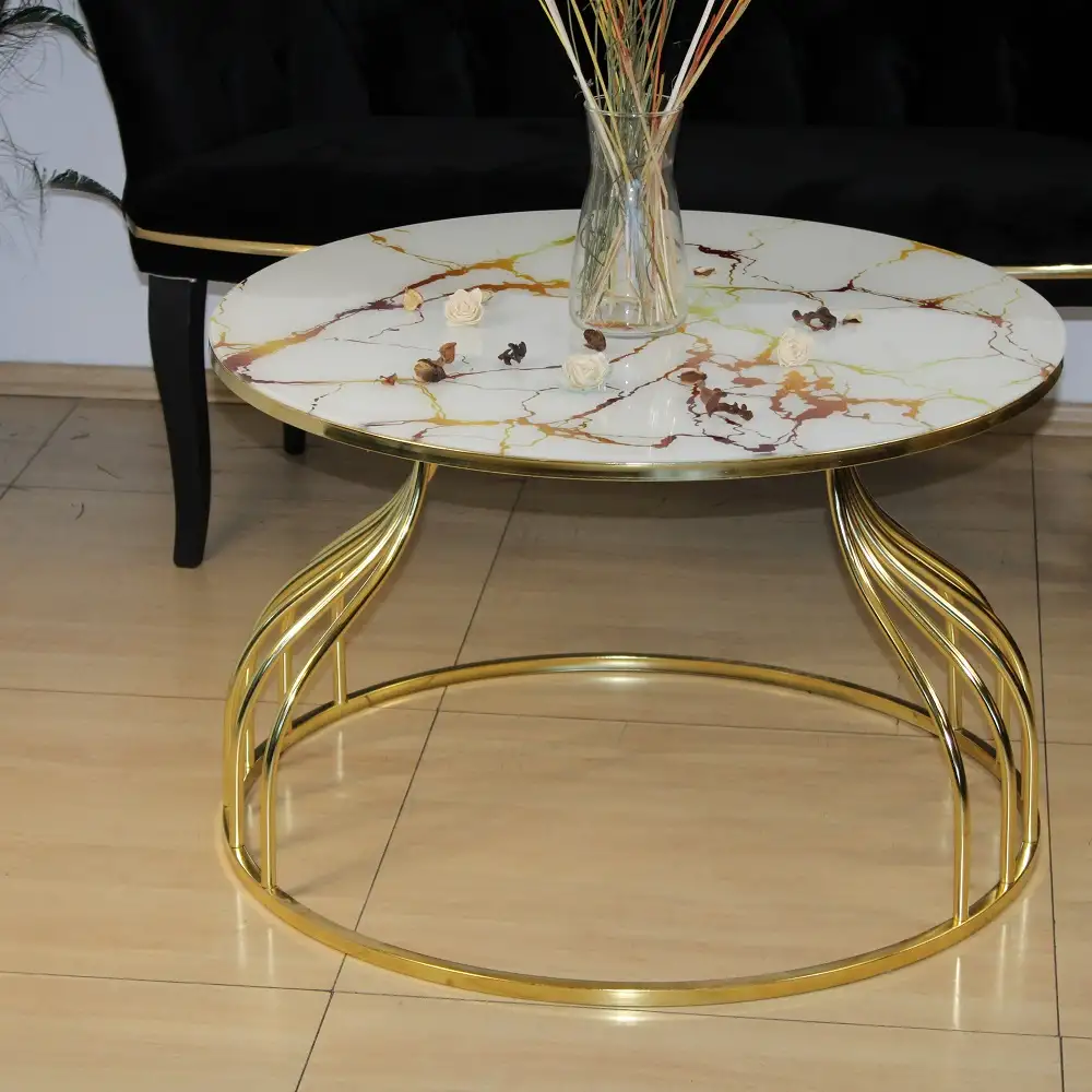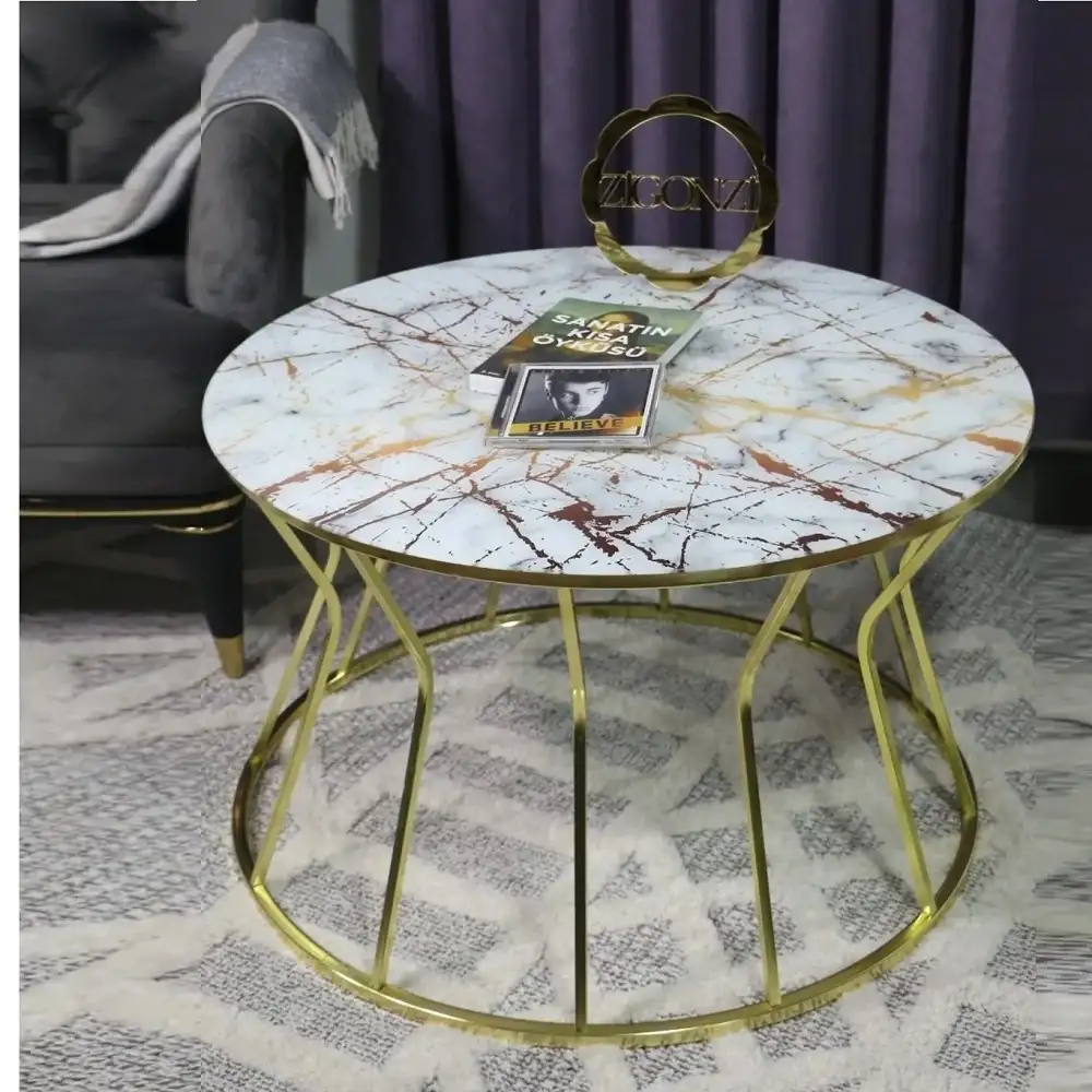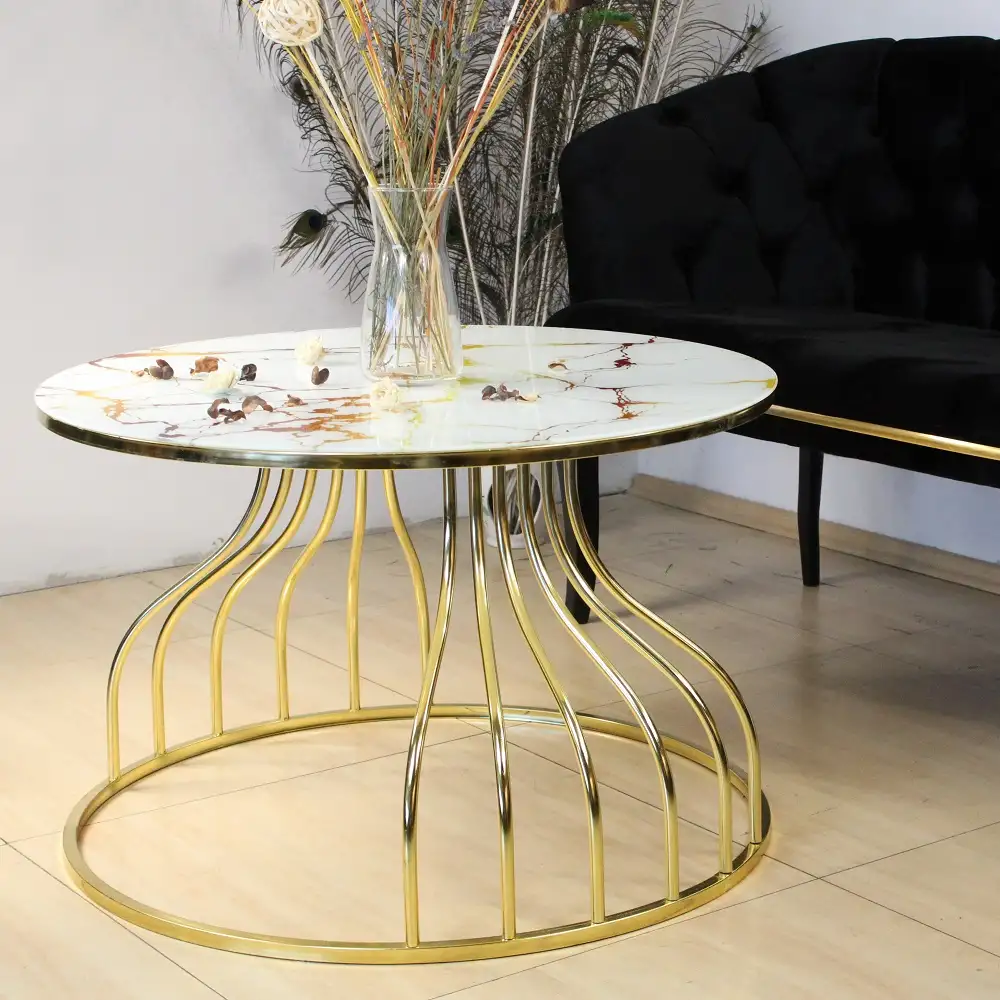 Masuta de cafea Viena, sticla si metal,bej marmurat