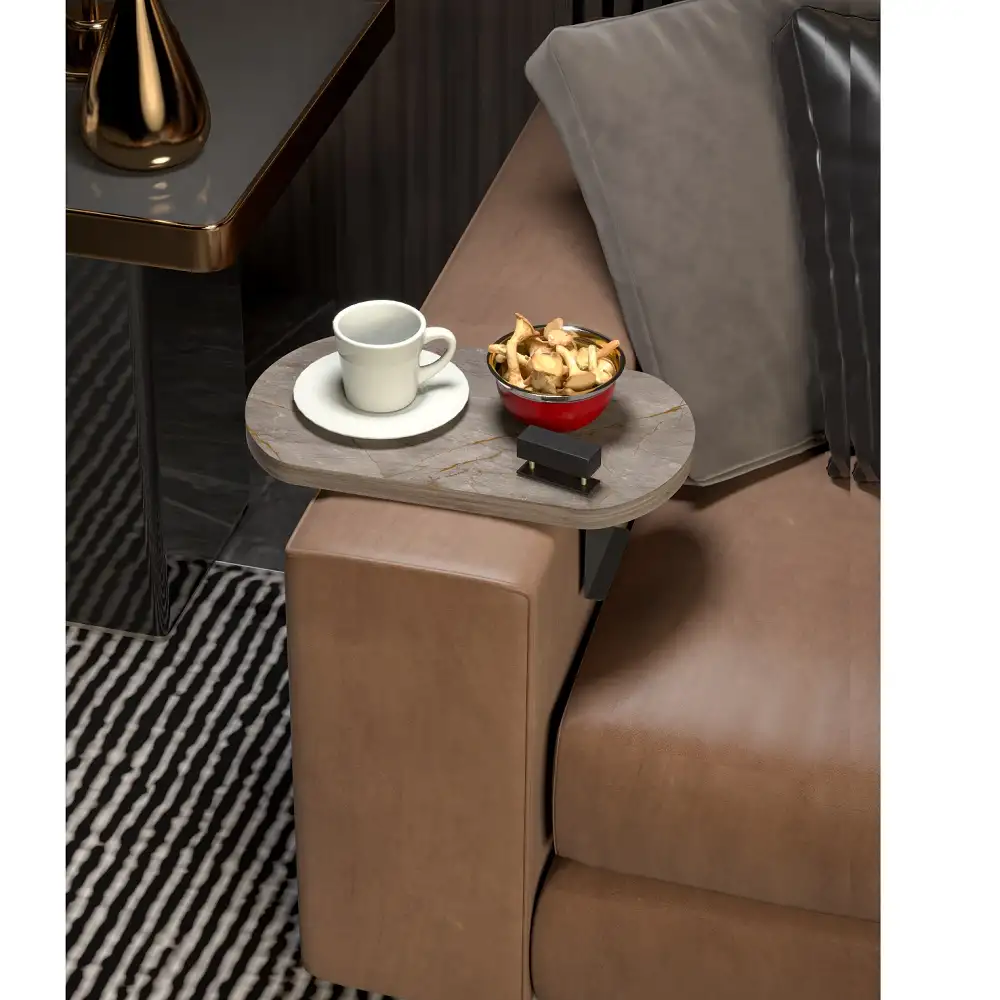 Design inteligent: se fixează direct pe mânerul canapelei – perfectă pentru spații mici sau minimaliste.