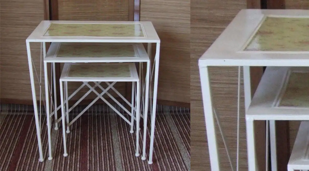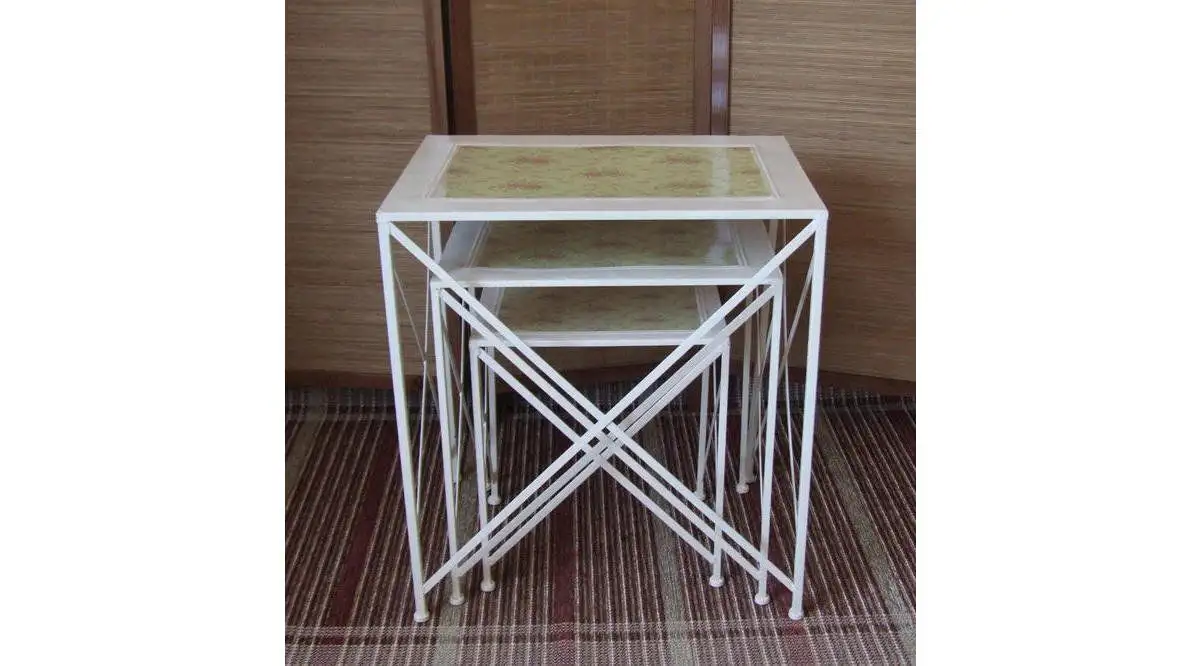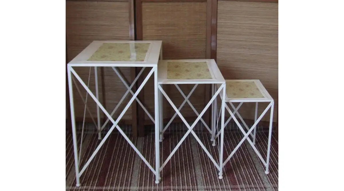 Set 3 masute metal talia Homs , alb,flower