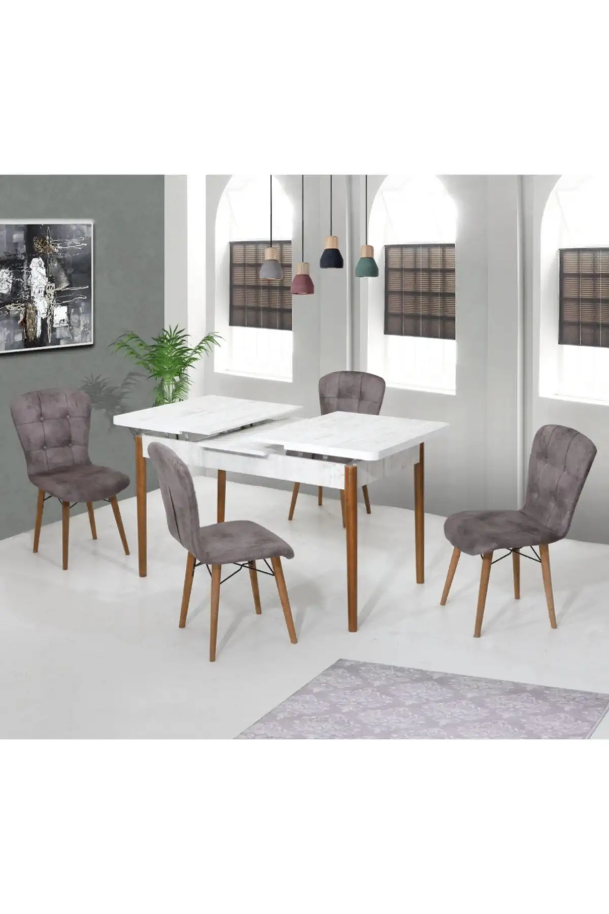 Set masa cu scaune ce contine masa extensibila si 6 scaune tapitate cu material textil usor plusat. Setul este destinat pentru locul de servire al mesei, fie ca este vorba de bucatarie, living sau zona speciala de dining.