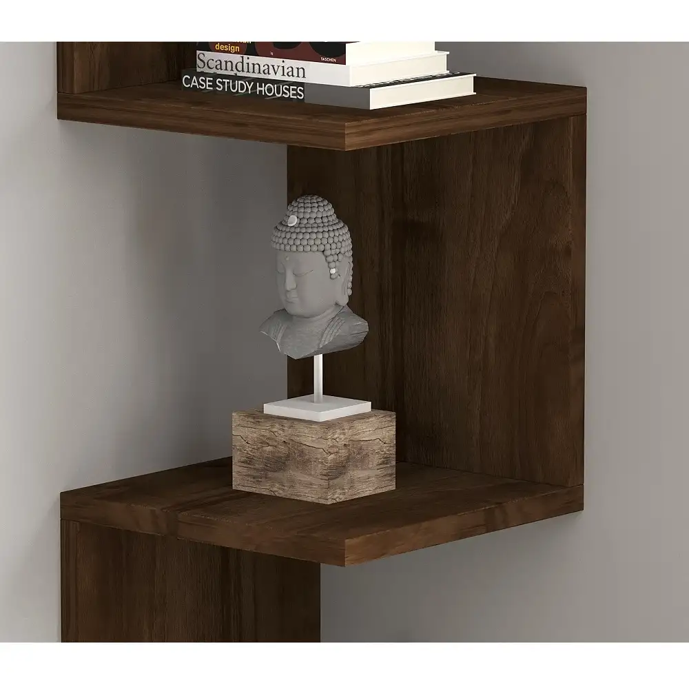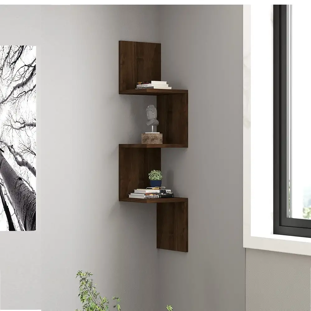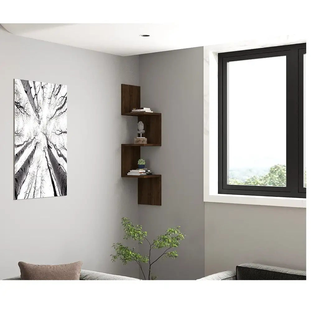 RAFT COLT NERA HOMS, NUC, 25 X 105.4 X 25 CM. Cu totii avem lucruri prin casa carora nu le gasim locul. Pentru a le aseza intr-un mod ordonat, insa fara sa ocupe mult spatiu ar fi bine sa profiti de spatiile moarte de pe colt si sa optezi pentru unul din rafturile de colt Nera. Raftul de colt Nera are un design modern ce atrage atentia fiind in acelasi timp o piesa practica. Poti depozita carti, rame foto, cosulete de rachita sau lemn cu diverse maruntisuri pe care nu le gasesti niciodata cand le cauti. Il poti folosi in living, in dormitor sau in camera copilului cu aceleasi rezultate de design si functionalitate. Raftul este realizat din pal de 18 mm culoare nuc. Se livreaza neasamblat, impreuna cu accesorii asamblare si montaj pe perete. Montajul se realizeaza de catre beneficiar.Curatarea se face cu o carpa alba moale si produse de curatenie neabrazive. Dimensiuni L 25, l 25, h 105.4,2 cm