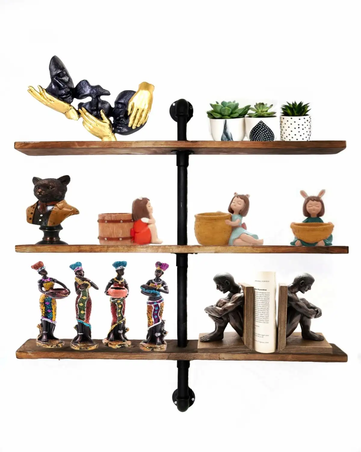 Raft cu 3 polite stil industrial din lemn-metal Homs 75 X 75 X 12 cm- un model inovator pentru un spatiu contemporan