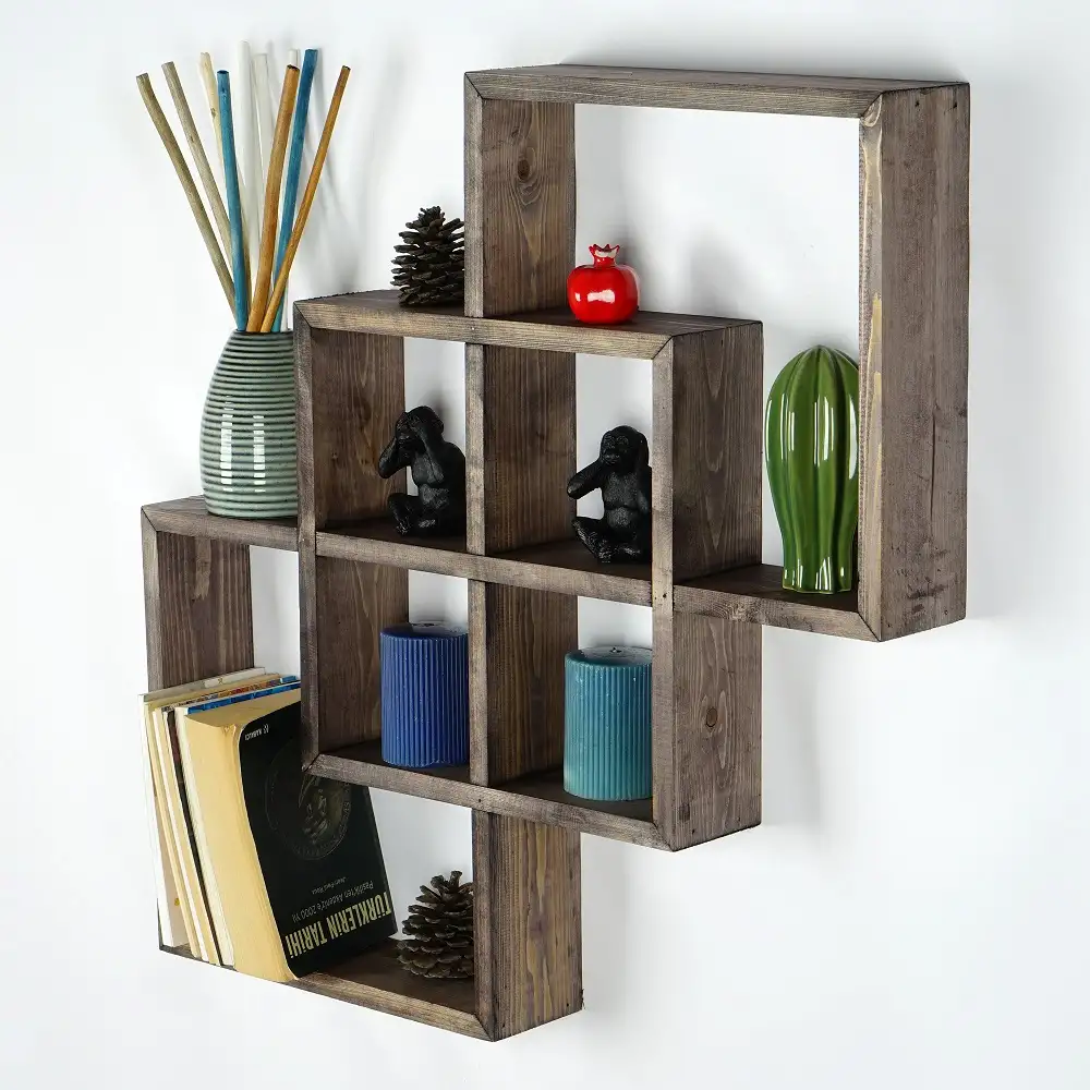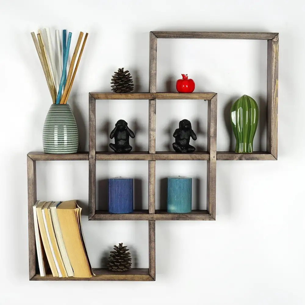 Raftul de perete din lemn Karo Homs, maro, impresionează prin designul său geometric și finisajul rustic, aducând un plus de personaitate oricărui spațiu. Cu dimensiuni compacte și o formă inedită, acest raft este ideal pentru a expune obiecte decorative, cărți sau plante, fiind potrivit atât pentru living, dormitor, birou, hol sau camera copilului.