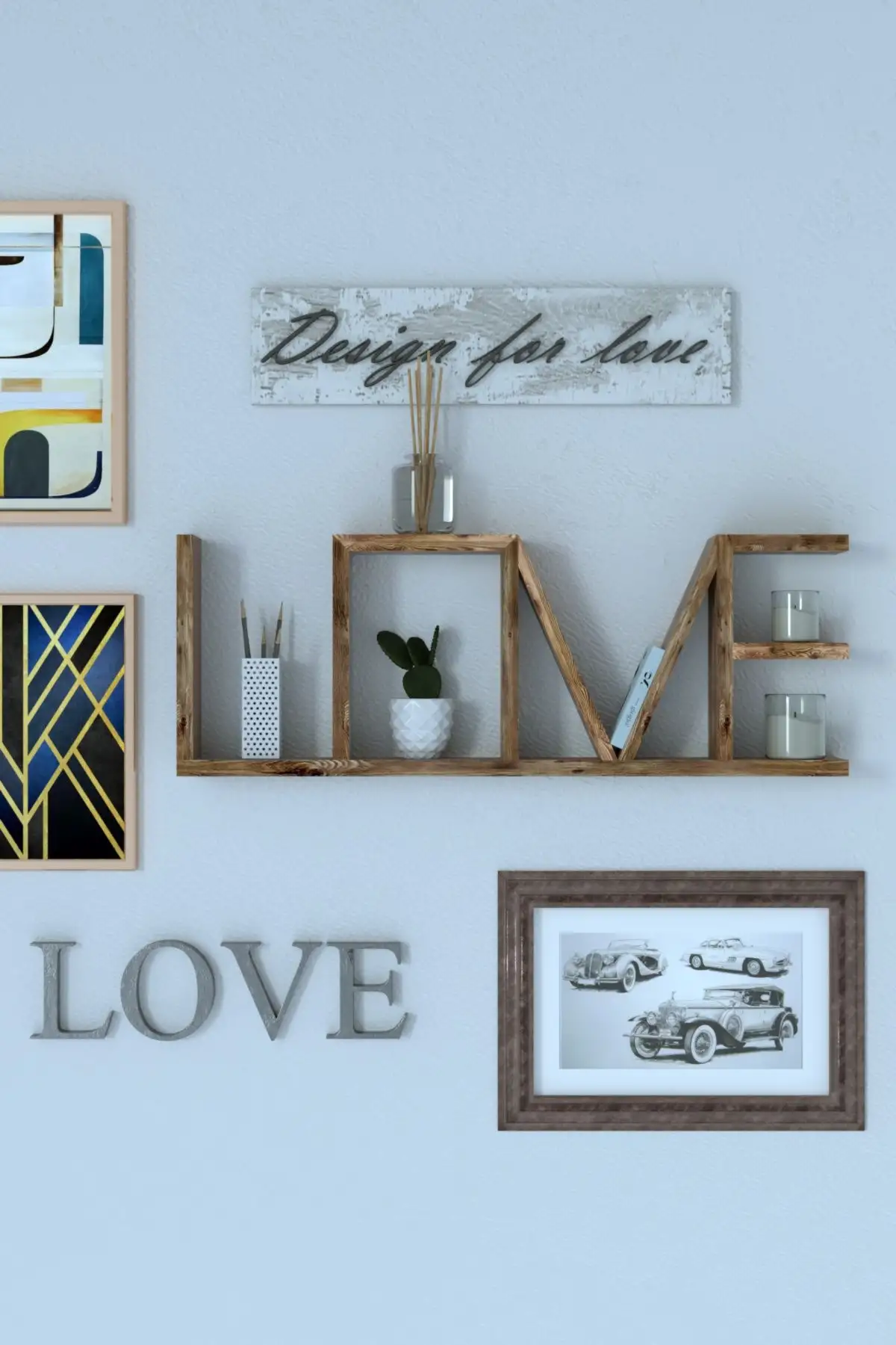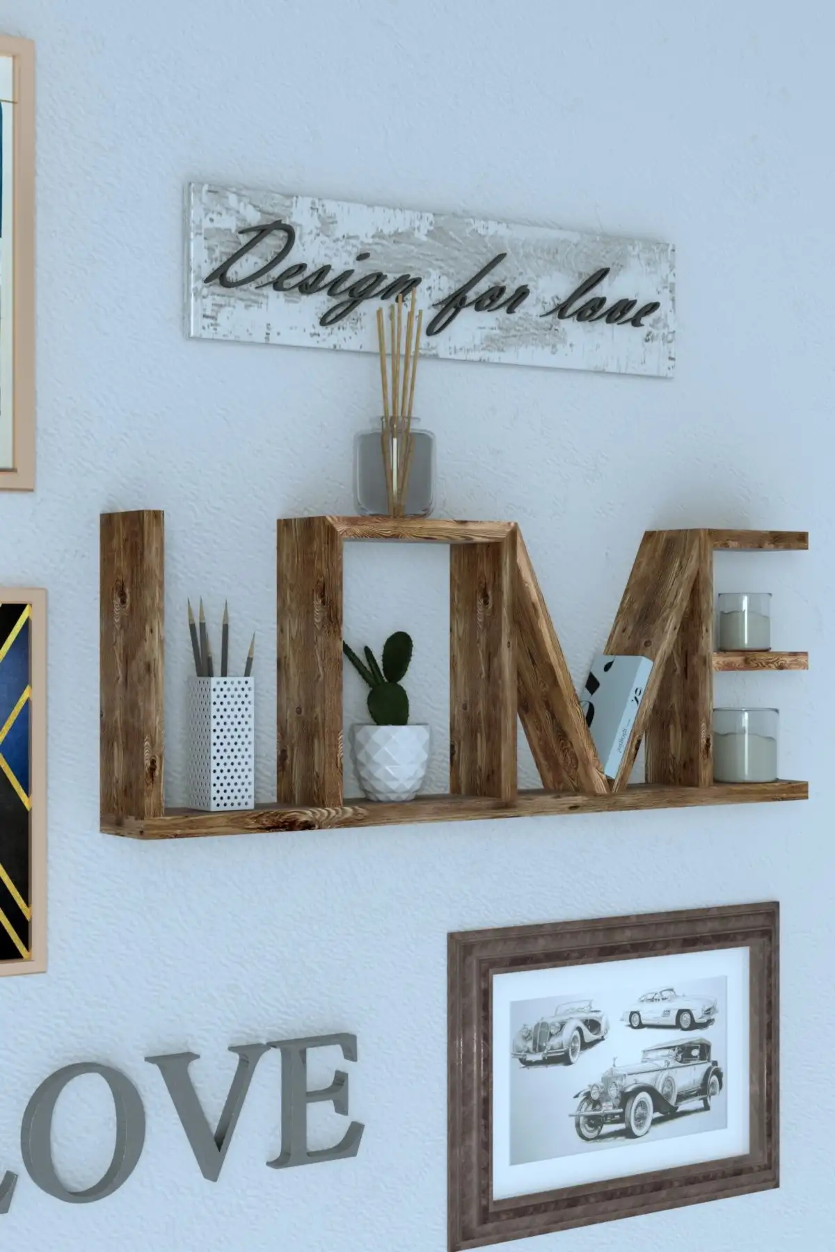 Alege un raft de perete LovU Homs din lemn natural, ce se poate regasi de minune intr-un decor modern, dar si intr-unul clasic. Acest model de raft suspendat este format din literele ce formeaza cuvantul „Love”. Designul invita la armonie, o stare de relaxare si liniste la tine in casa. Astfel, pe langa nuanta maro, produsul lasa fibra lemnului vizibila pentru un efect si mai puternic. Dimensiunile sunt ideale indiferent de spatiul pe care il ofera peretele si se potriveste atat in dormitor, pe hol, dar si in living.