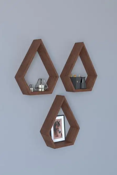 Resigilat:Set 3 rafturi de perete din lemn Yagmur Homs, maro, 35 x 28 x 8 cm