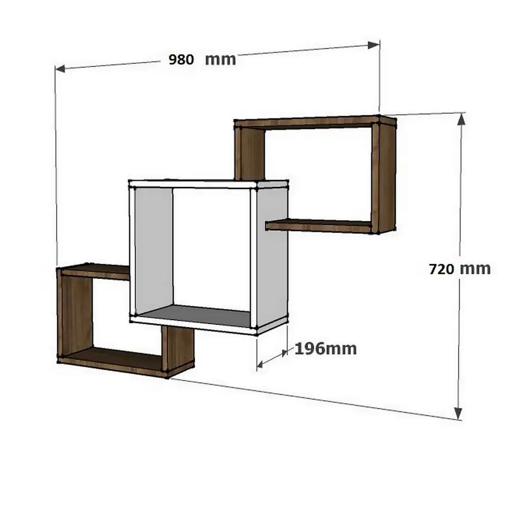 100% MELAMINE COATED PARTICLE BOARDThickness: 18 mmWidth: 98 cm Height: 72 cm Depth: 19,6 cmCan be Fixed to the Wall