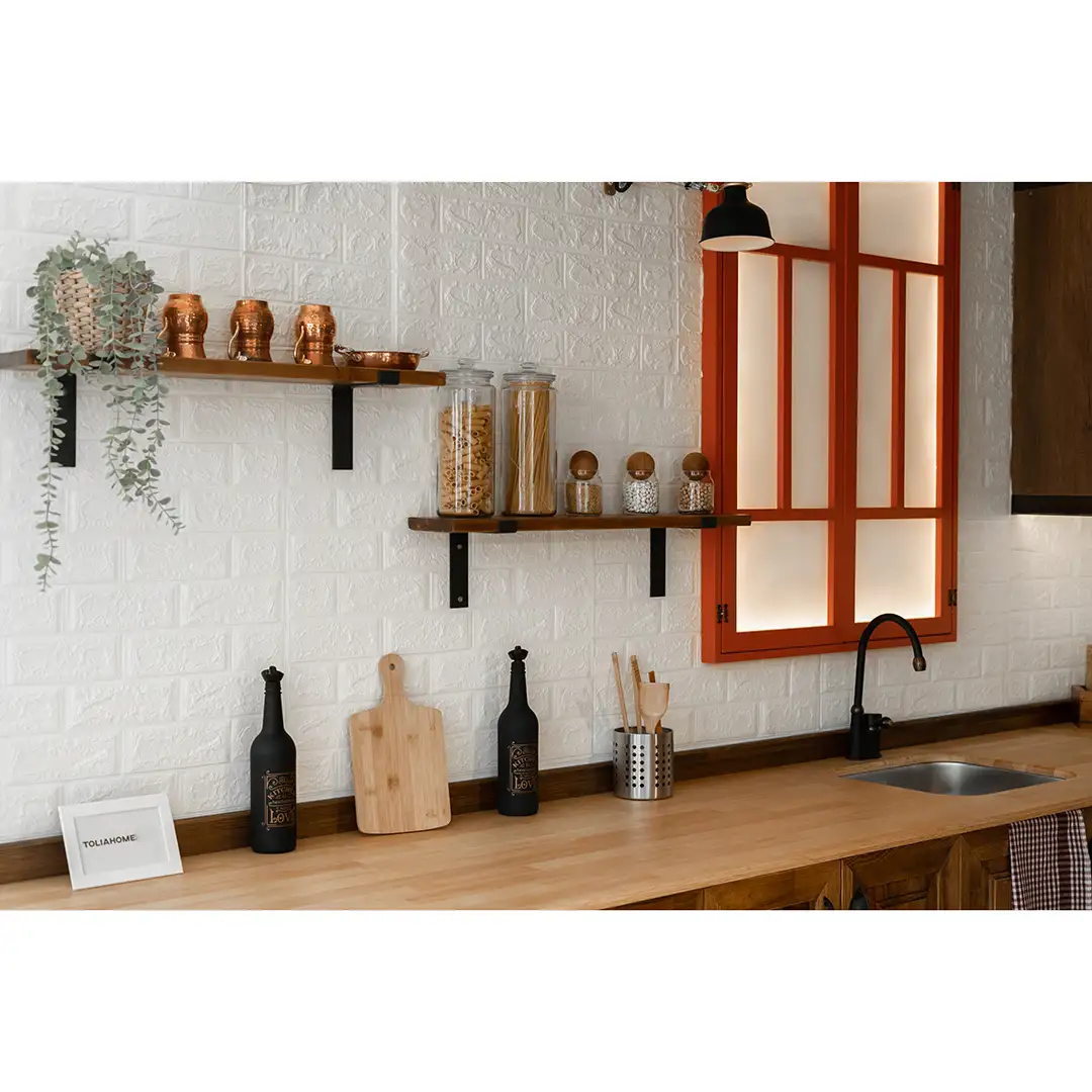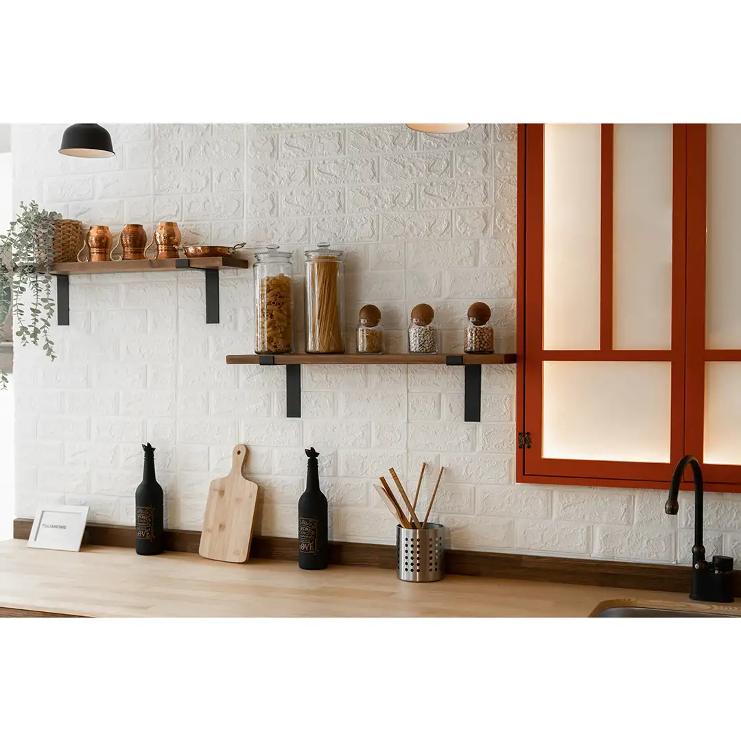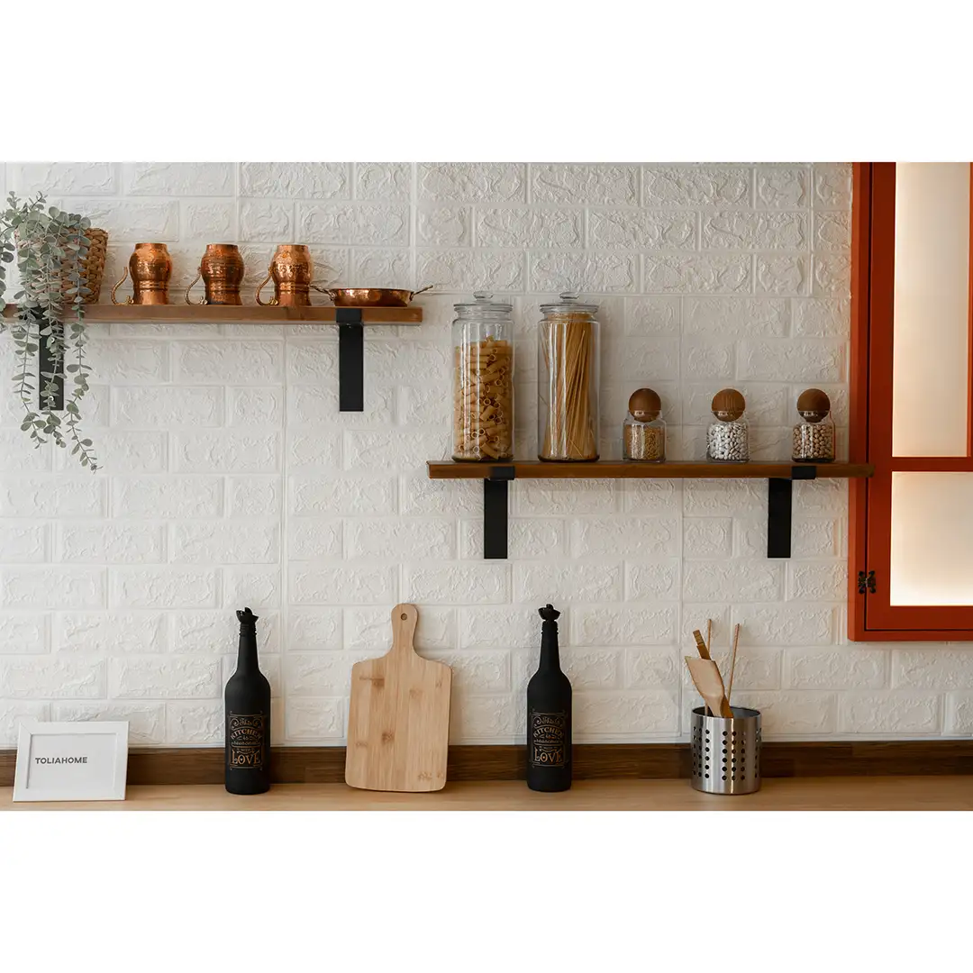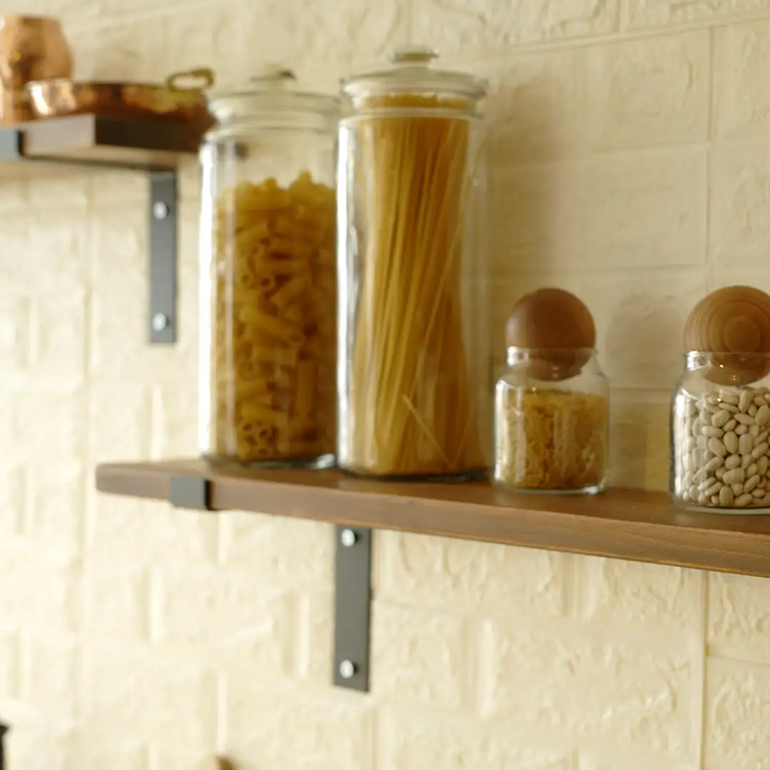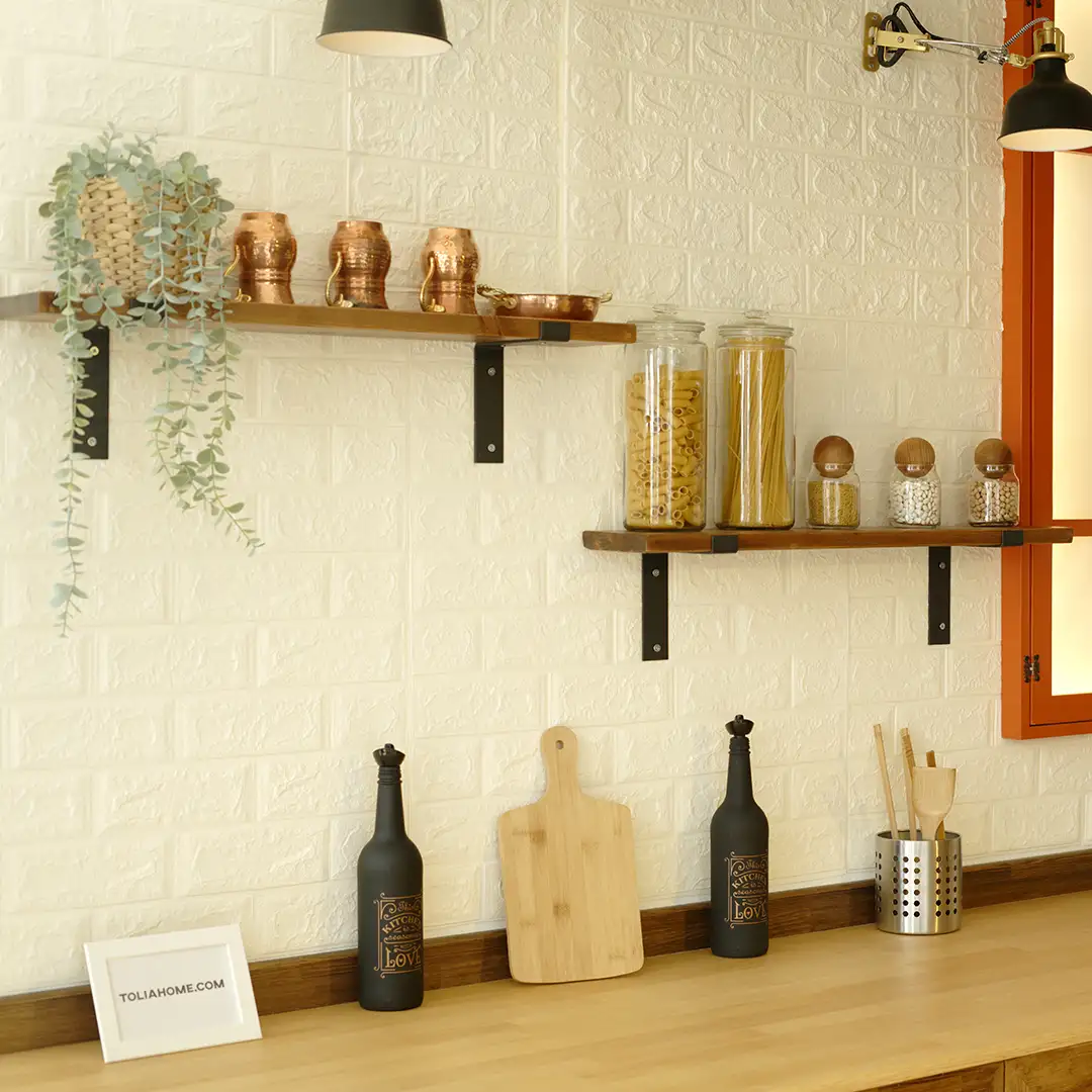În bucătărie, așază condimente, borcane sau vase mici, transformând un perete gol într-un spațiu practic și elegant.