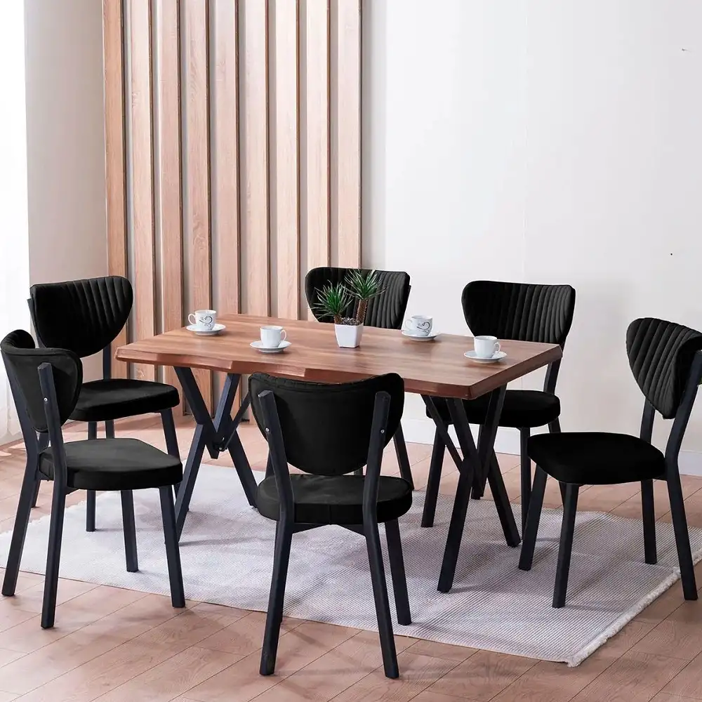 Setul de dining Barton este alegerea ideală pentru un spațiu modern și rafinat, fiind potrivit pentru bucătărie, living sau o zonă de dining open space. Combinând un design contemporan cu materiale durabile, setul include o masă cu blat MDF dublu stratificat, gros de 36 mm, cu finisaj elegant nuc, și 4 scaune metalice tapițate în negru, care oferă un nivel sporit de confort.