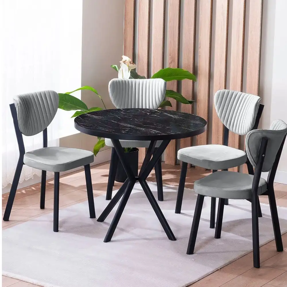 Transformă zona de luat masa într-un spațiu modern și primitor cu setul Barton, compus dintr-o masă robustă din MDF și 4 scaune metalice tapițate. Cu un design contemporan și materiale de calitate, acest set este ideal pentru bucătărie, living sau dining open-space.
