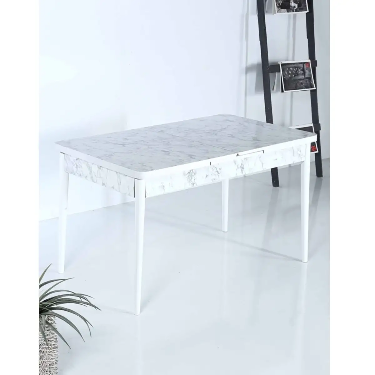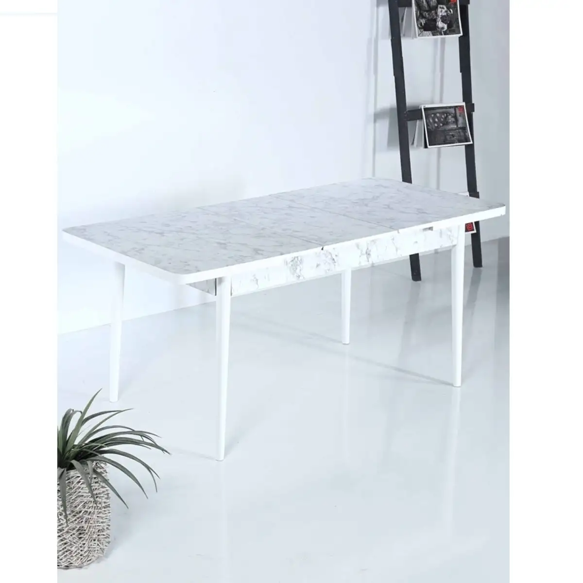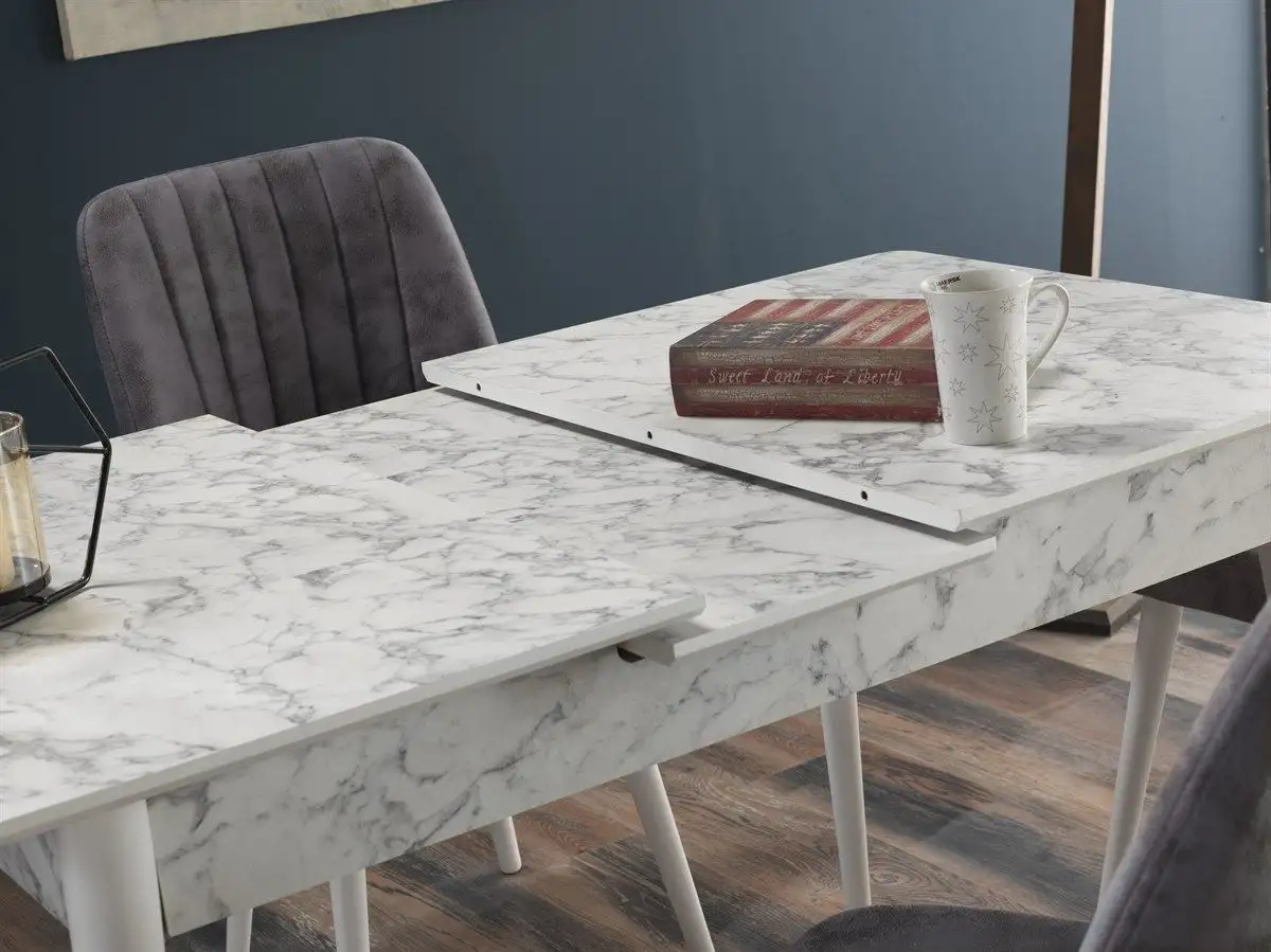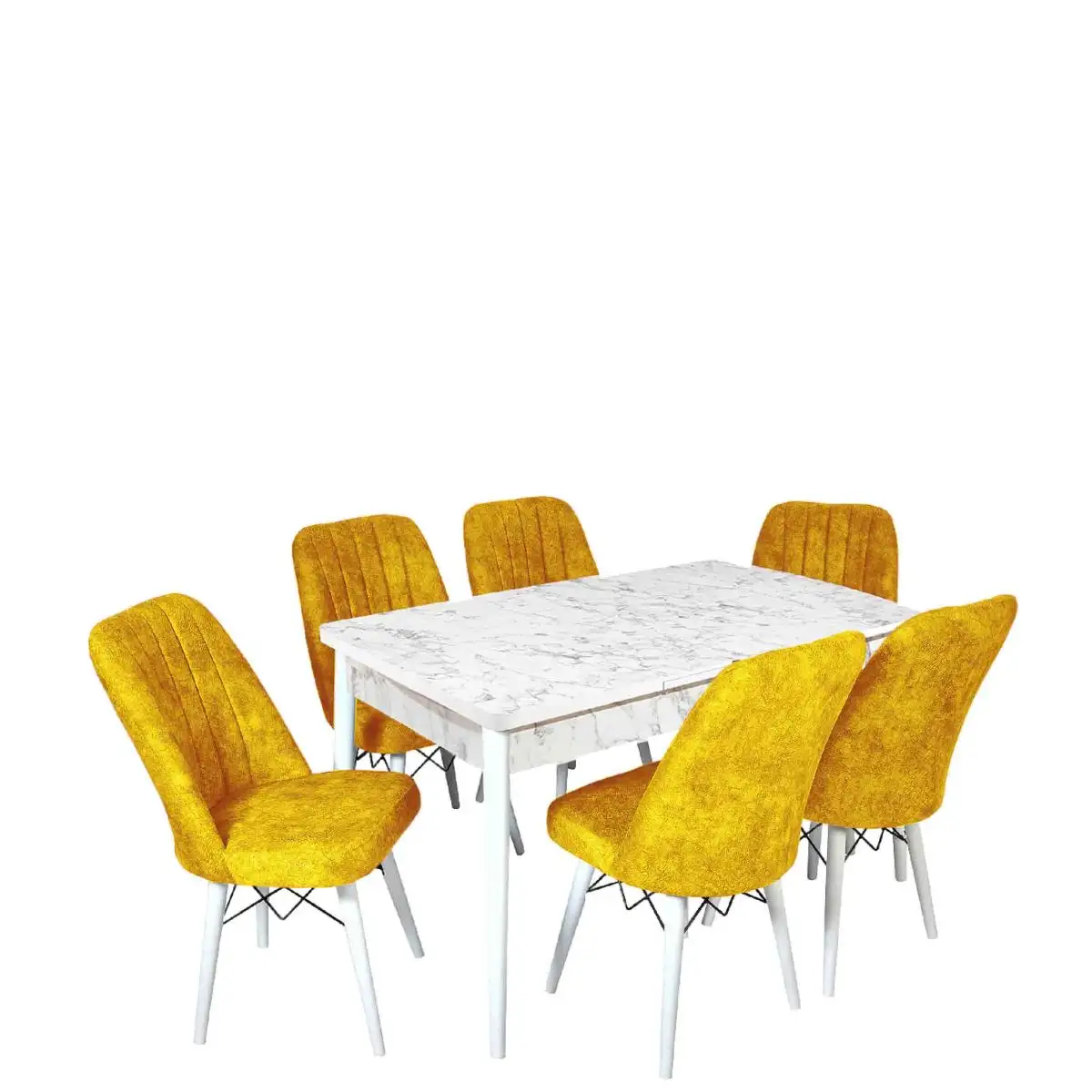 Set masa extensibila cu 6 scaune bejmarmurat-mustar – culori vii pentru sufrageria ta
