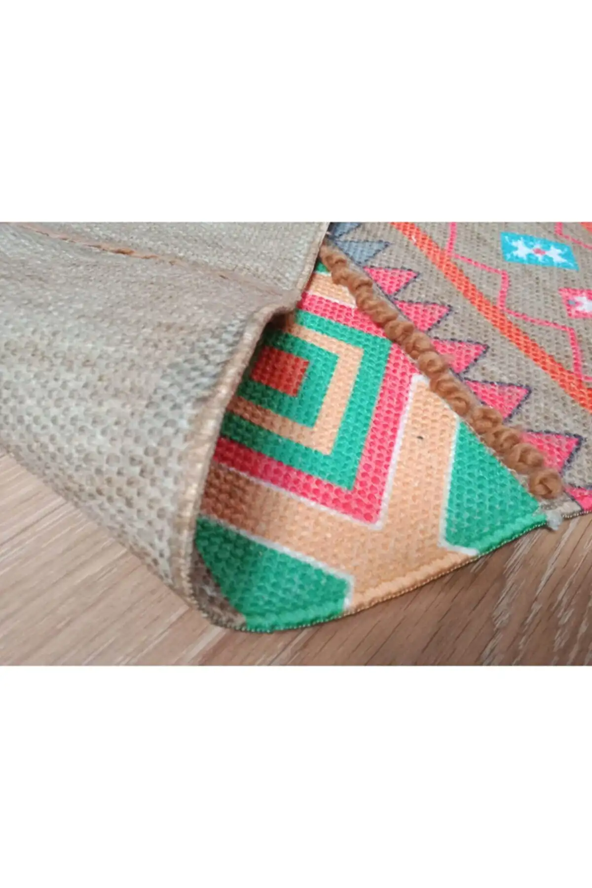 Acest model vivace si colorat imbina nuantele pastelate cu brunul. Se potriveste in casele rustice, dar si in cele moderne, datorita jocului cromatic. Este prevazut cu franjuri si are in compozitie o tesatura care se mentine perfect in timp. Usor de curatat si de spalat, covorul poate fi foarte util in casele cu trafic intens, sau in camerele de la intrare.