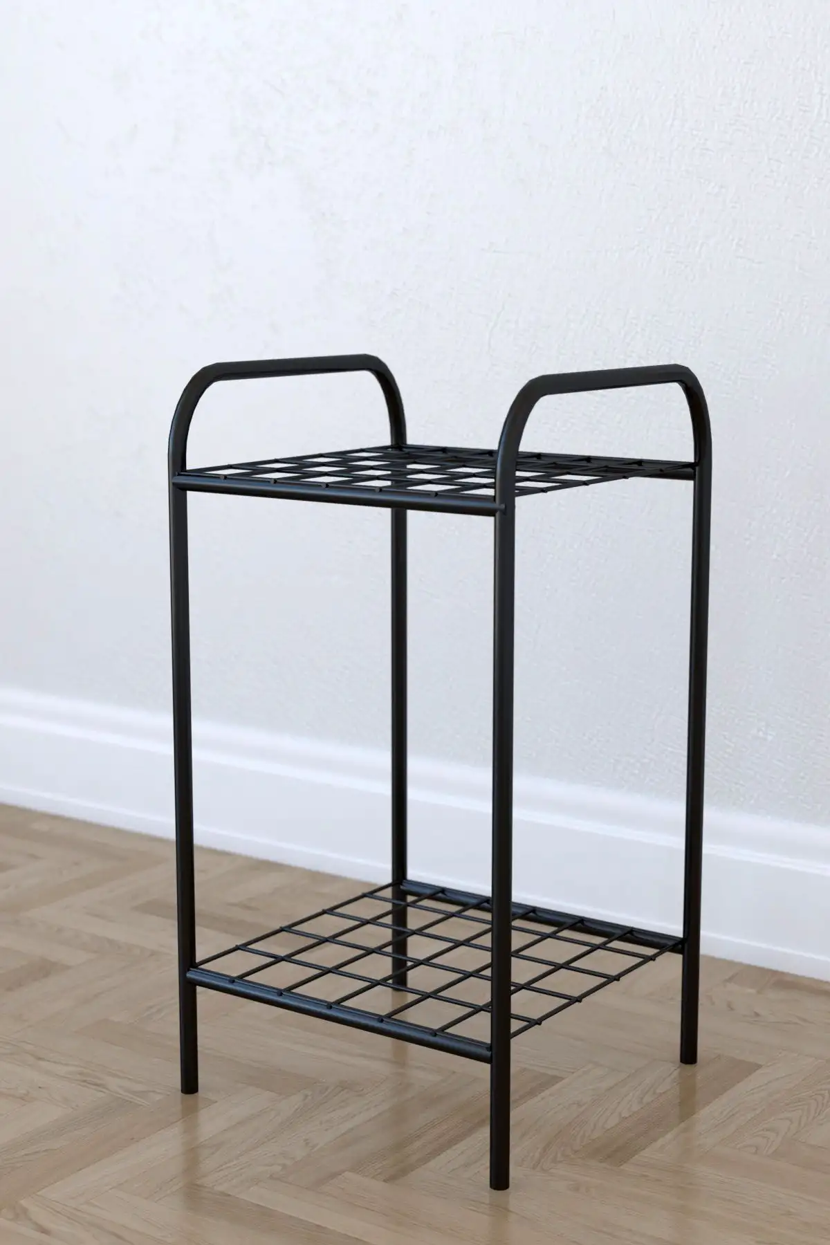 Etajera metalica cu 2 polite pentru ghivece cu flori si nu numai.Etajera economica realizata din profil metalic vopsit electrostatic negru cu grosime de 21 mm.