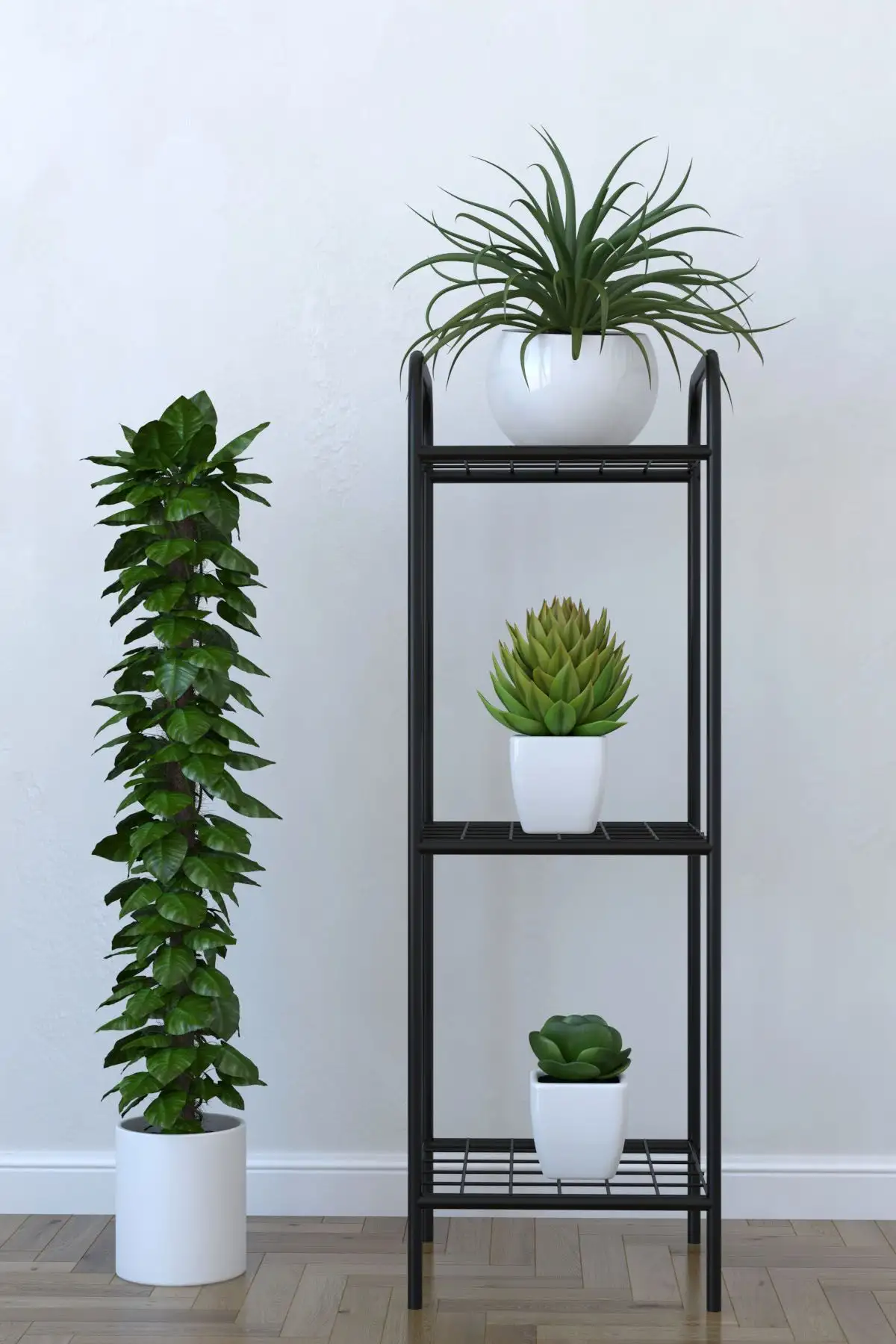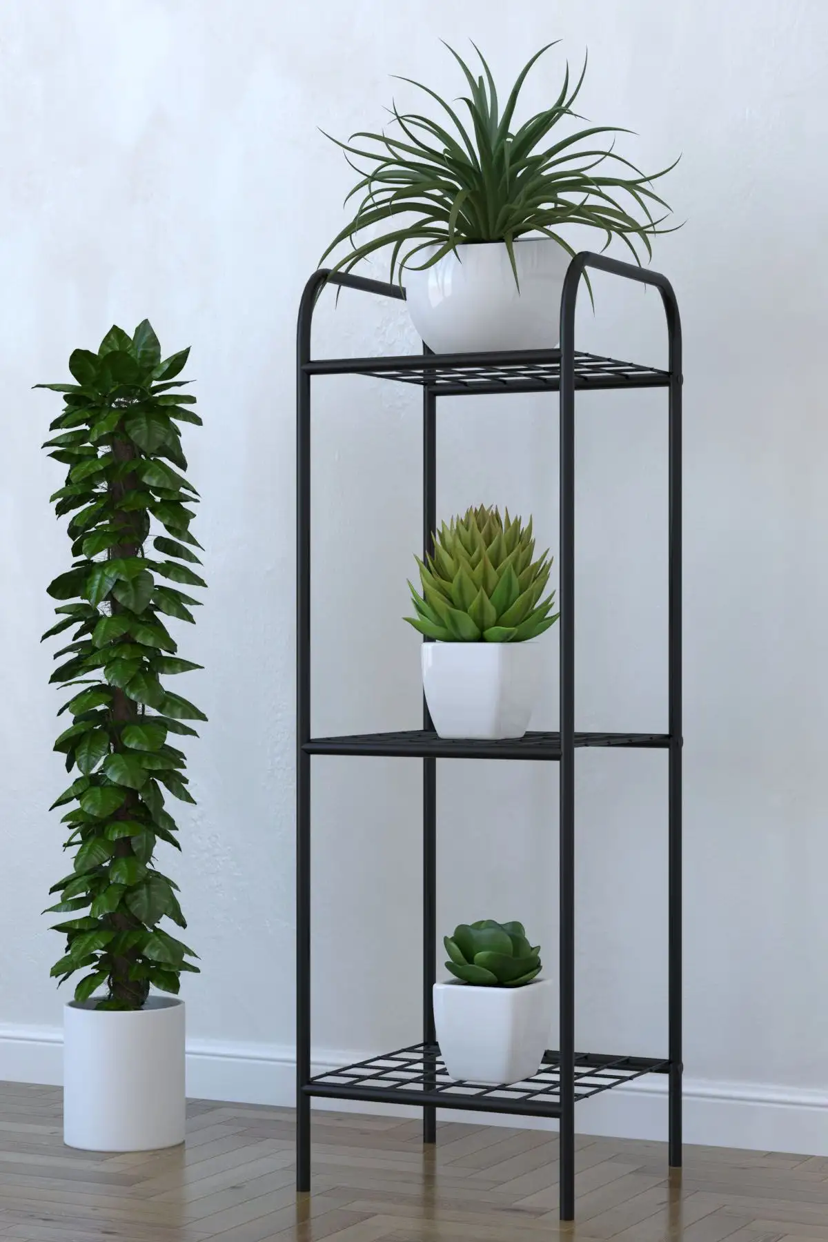 Etajera metalica cu 3 polite pentru ghivece cu flori si nu numai.Etajera economica realizata din profil metalic vopsit electrostatic negru cu grosime de 21 mm.