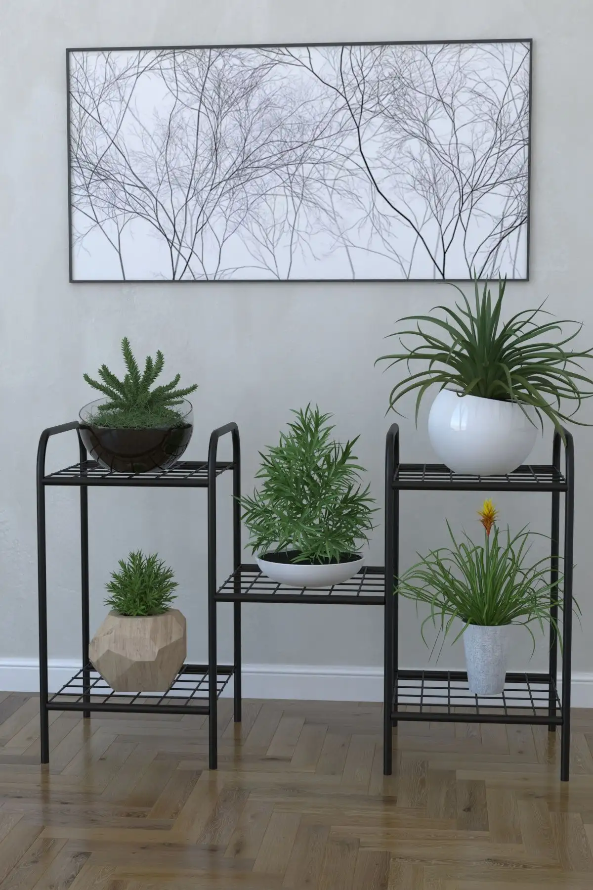Etajera metal pentru flori 5 rafturi Decor Homs 95 x 60 x 31 cm, negru